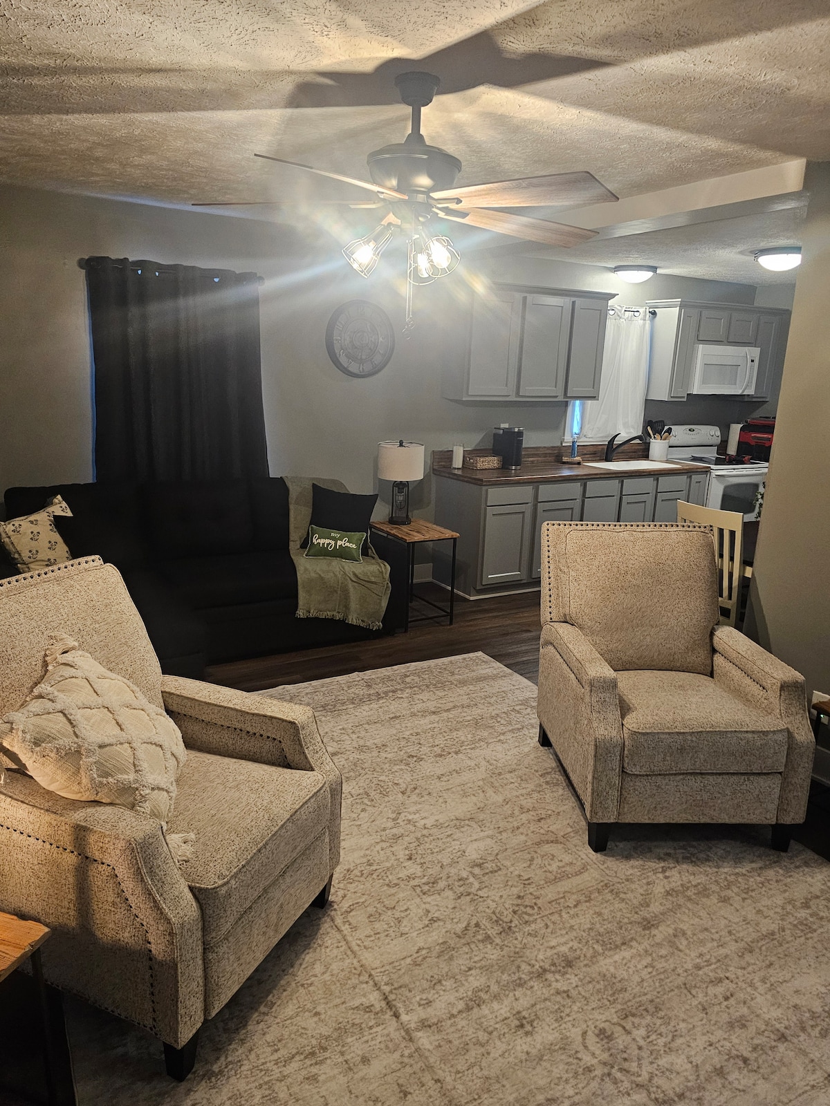 Main level apartment. Kitchen fully stocked for all cooking needs, granite counter tops & stainless steel appliances. Unique dining options & entertainment venues, just short walk away. Hypoallergenic carpeting in bdrms, wood-look luxury vinyl plank flooring rest of apartment & over 10 ft ceilings w/ fans in the living/dining area & all bedrooms. Open floor plan. 43" Roku TV w/ WiFi supplied for guests. Have 1 pack n play for 2 apts so message request for it. 1st request gets may use it