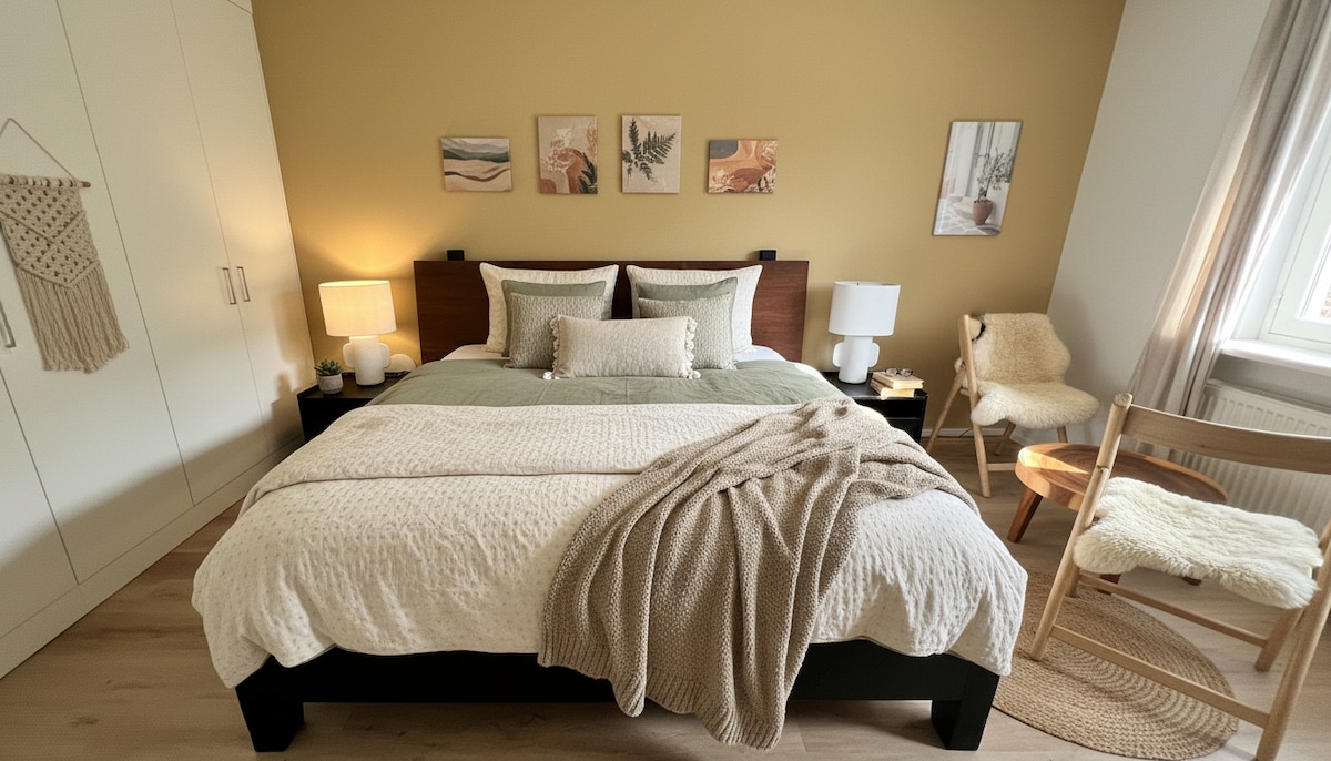 Unser Apartment besticht durch top-modernes Design: Bad mit Regendusche, Handtuchwärmer u. exklusiven Armaturen. Fischgrätparkett schafft eine stilvolle Atmosphäre. Küche mit High-End-Geräten (Bora, V-Zug, Spülmaschine, Waschmaschine/Trockner). Balkon ist gross, ruhig gelegen, bietet viel Privatsphäre und eine schöne Aussicht. Philips HUE Lampen für stimmungsvolles Licht. Ein Samsung The Frame verwandelt den Raum in eine Kunstgalerie. Das komfortable Bett rundet das Angebot zum Wohlfühlen ab!