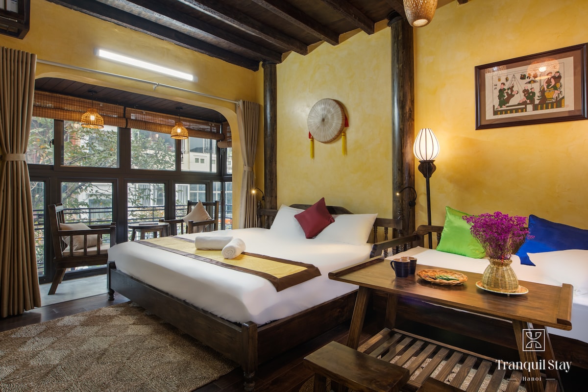 Ξυπνήστε πάνω από την Παλιά Συνοικία του Ανόι σε ένα ήσυχο, άνετο στούντιο με ένα ευρύχωρο ηλιόλουστο μπαλκόνι ιδανικό για αργά πρωινά, τοπικό καφέ και να παρακολουθήσετε την πόλη να ζωντανεύει απαλά. Σε μικρή απόσταση με τα πόδια από τη λίμνη Hoan Kiem, την οδό μπύρας Ta Hien και την αγορά Dong Xuan. Βρίσκεται στην οδό Gia Ngu με εύκολη πρόσβαση με ταξί και πλυντήριο αυτοεξυπηρέτησης στον κάτω όροφο. Μια ζεστή, ήρεμη διαμονή με αυθεντική ψυχή της Παλιάς Συνοικίας πραγματικά Ανόι.