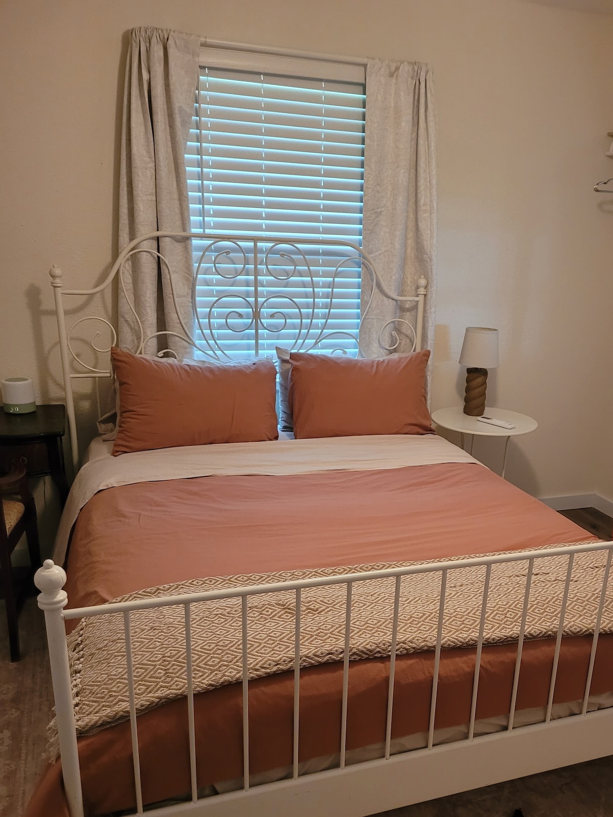 Το Peaceful Oasis είναι μια απομονωμένη σουίτα επισκεπτών ενός υπνοδωματίου με πλήρες μπάνιο ξεχωριστό από το κύριο σπίτι. Η σουίτα έχει τη δική της ιδιωτική εξωτερική είσοδο. Το δωμάτιο διαθέτει ένα άνετο διπλό κρεβάτι, μίνι ψυγείο, φούρνο μικροκυμάτων, καφετιέρα και Roku smartTV.