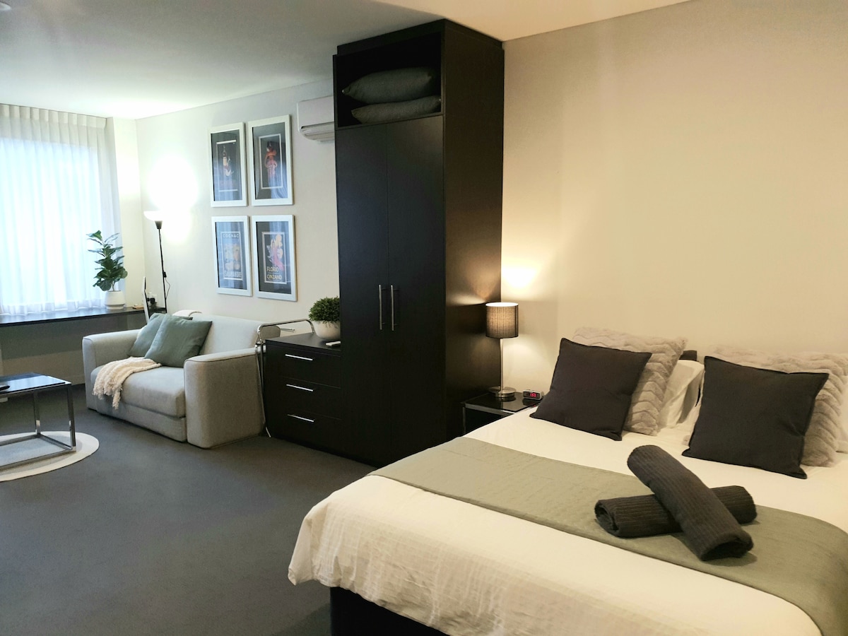 Αυτό το όμορφα διαμορφωμένο διαμέρισμα βρίσκεται ψηλά πάνω από την πόλη και προσφέρει εκπληκτική θέα στον ορίζοντα, ένα πολυτελές διπλό κρεβάτι, μια πλήρως εξοπλισμένη κουζίνα, μια μηχανή Nespresso για το πρωινό σας τελετουργικό, Wi-Fi υψηλής ταχύτητας, ένα ιδιωτικό μπαλκόνι για να χαλαρώσετε και ένα μικρό δώρο καλωσορίσματος για να νιώσετε σαν στο σπίτι σας. Λίγα βήματα από εστιατόρια, το Crown, το στάδιο Marvel και τον σταθμό Southern Cross. Το SkyBus, τα τρένα και τα τραμ είναι όλα στο κατώφλι σας. Πρόωρη άφιξη ή καθυστερημένη αναχώρηση κατόπιν αιτήματος. Ρωτήστε.
