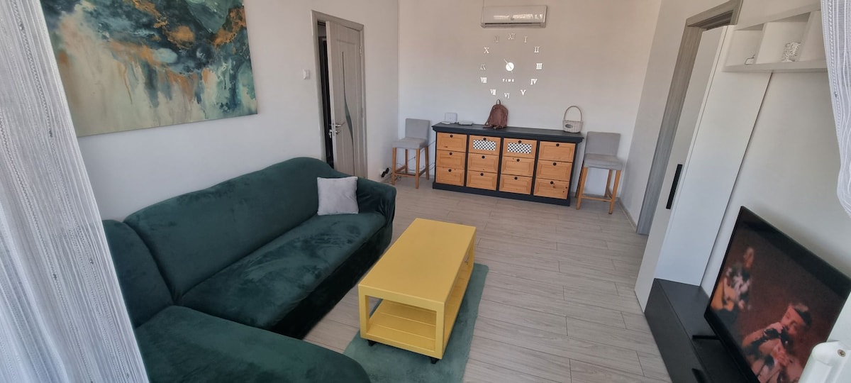 Το διαμέρισμα βρίσκεται σε μια ήσυχη περιοχή με θέα στο δάσος και το πάρκο, κοντά στην τουριστική περιοχή του θέρετρου και των ιαματικών πηγών. Είναι εξοπλισμένο με wifi, πλήρως εξοπλισμένη κουζίνα. Σε κοντινή απόσταση υπάρχουν παντοπωλεία, εστιατόρια. Υπάρχει διαθέσιμος χώρος στάθμευσης μπροστά από το κτίριο.