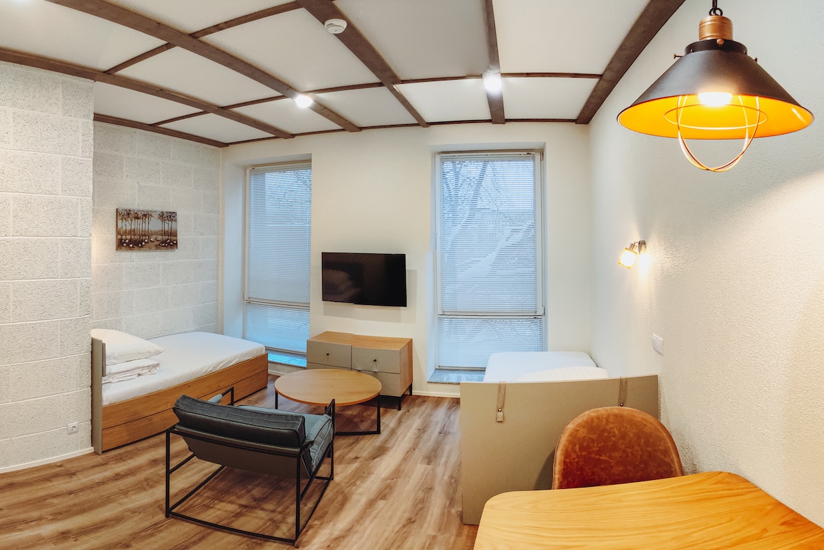 Το άνετο ξενοδοχείο διαμερισμάτων μας βρίσκεται στην καρδιά της πόλης και προσφέρει νέα διαμερίσματα με κλασικό εσωτερικό, πλήρως εξοπλισμένες κουζίνες, σύγχρονες συσκευές (για παράδειγμα, ασύρματους φορτιστές ή τηλεόραση υψηλής τεχνολογίας με Netflix) και πολλά άλλα! Είμαστε στην ευχάριστη θέση να σας ενημερώσουμε ότι διαθέτουμε επίσης σύστημα check-in χωρίς επαφή. Και θα είμαστε πάντα σε επαφή μέσω δημοφιλών μηνυμάτων, ώστε να μπορείτε να επικοινωνήσετε μαζί μας ανά πάσα στιγμή αν έχετε απορίες. Κάναμε ό, τι καλύτερο μπορούσαμε για να διασφαλίσουμε ότι όλα ήταν μελετημένα μέχρι την παραμικρή λεπτομέρεια και ελπίζουμε ότι αυτό, σε συνδυασμό με τη φιλοξενία μας, θα κάνει το ταξίδι σας ξεχωριστό.