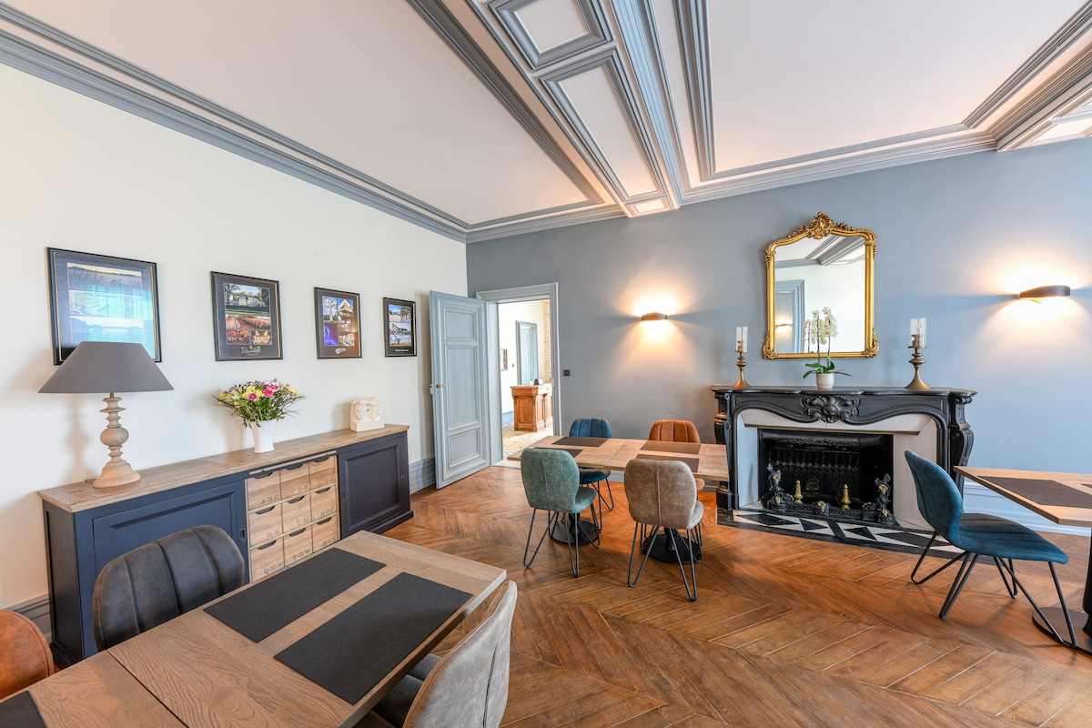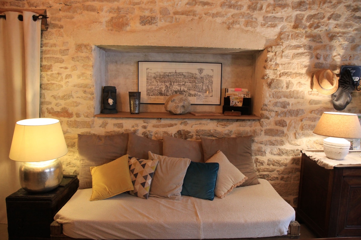 Το σπίτι μας στο οποίο ζούμε όλο τον χρόνο έχει αποκατασταθεί για να έχει όλες τις ανέσεις, διατηρώντας παράλληλα τα αρχικά χαρακτηριστικά ( ξυλουργική , παρκέ δάπεδα, τζάκια, πίνακες ζωγραφικής κ.λπ.) και η αυλή έχει γίνει ένας φιλόξενος κήπος. Δεν επιτρέπονται τα κατοικίδια. Μια ολόκληρη πτέρυγα του σπιτιού είναι δεσμευμένη για εσάς στον πρώτο όροφο με θέα στον εσωτερικό κήπο.