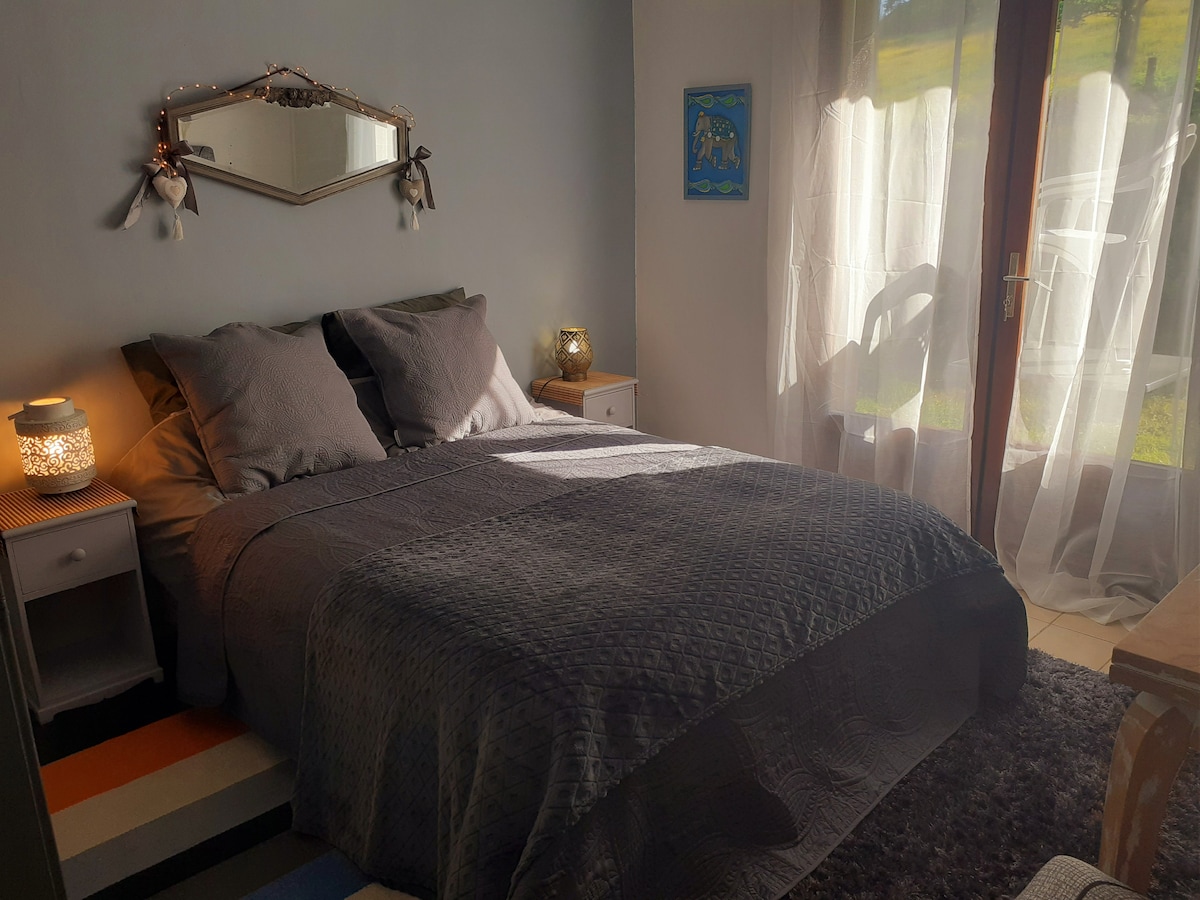 Master suite περίπου 33 τ.μ. χωρίς σκαλοπάτια. Ιδιωτική είσοδος, υπνοδωμάτιο 20 τ.μ., ξεχωριστή τουαλέτα και μεγάλο μπάνιο (μεγάλο ιταλικό ντους και διπλό νιπτήρα). Κρεβάτι 160X200. Καινούρια κλινοσκεπάσματα. Διατίθεται πρωινό κατόπιν αιτήματος (πληρώνεται στον χώρο). Σπίτι στο χωριό Vigen 2 χιλιόμετρα από το πάρκο Reynou και στην άκρη του Solignac και του αβαείου του, σε ένα μεγάλο πάρκο με γήπεδο pétanque.