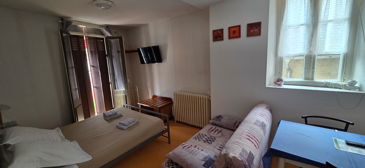 This air-conditioned, soundproofed accommodation boasts a view of the Pyrenees and is equipped with flat-screen TV and free Wi-Fi internet access. It is less than 10 minutes from the Notre-Dame de Lourdes shrine and the Grotto . It is close to shops, restaurants and the town centre on foot, the tourist office and the bus station and sncf . We have a private pay car park for cars and motorbikes.