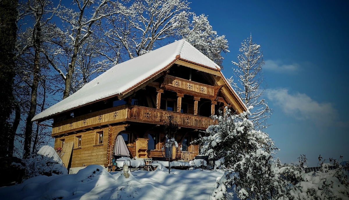 Το μικρό μας αγρόκτημα στο Emmental σε υψόμετρο 1000 μέτρων, με υπέροχη θέα στα βουνά, προσφέρει ένα διαμέρισμα 3 ½ δωματίων. Μαζί μας μπορείτε να χαλαρώσετε, να ζήσετε και να αποσυνδεθείτε. Εδώ τα παιδιά μπορούν να παρατηρούν τα ζώα, να κινούνται σε όλο το αγρόκτημα και να βοηθούν κατά τη διάρκεια της περιόδου του στάβλου. Εναλλακτικά, μπορούν να απολαύσουν την όμορφη φύση κάνοντας πεζοπορία και ποδηλασία. Το διαμέρισμα διαθέτει ένα όμορφο καθιστικό με ξύλινο τζάκι και παιδική χαρά.