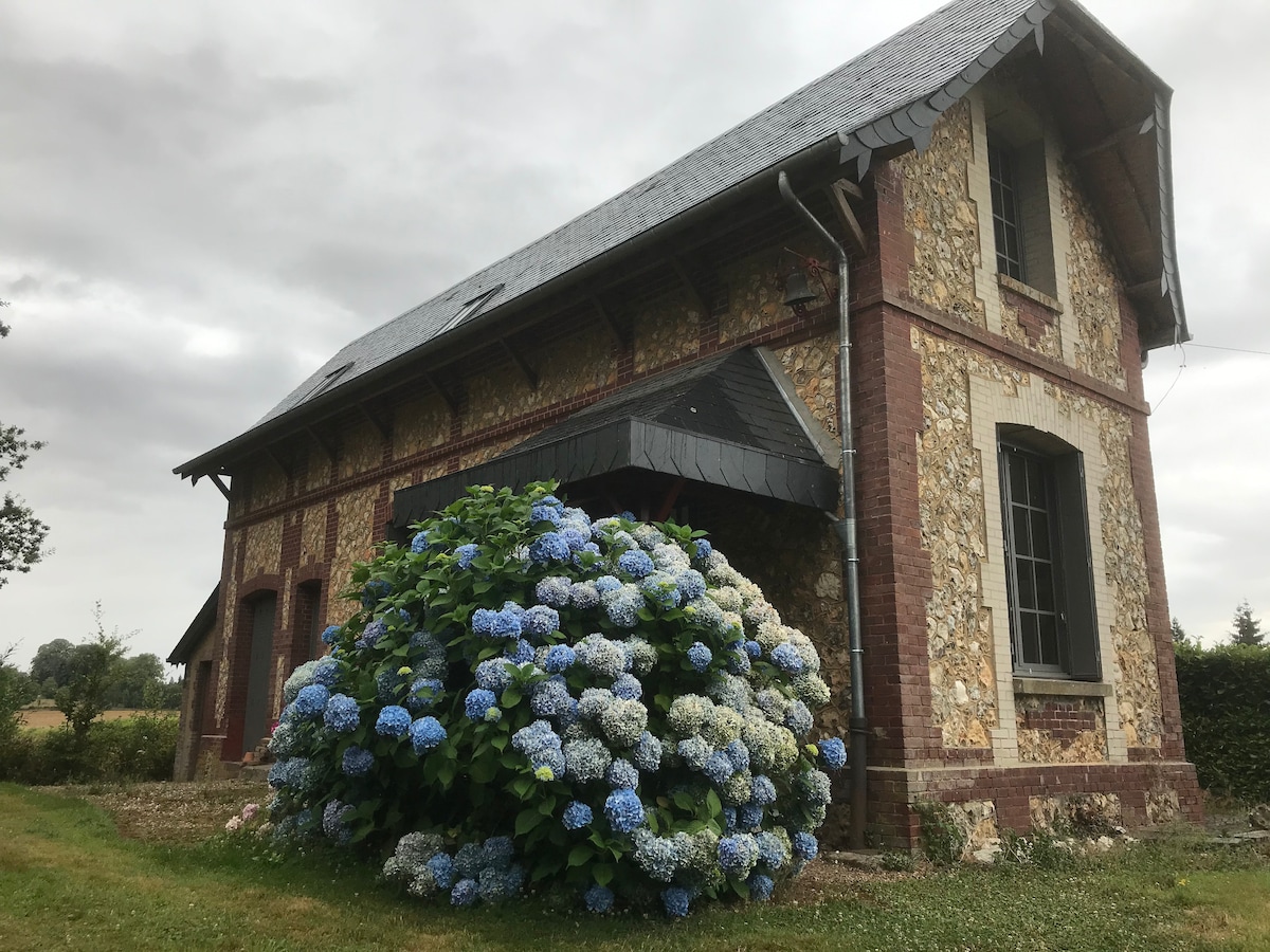 Μεγάλο σπίτι στην ύπαιθρο της Νορμανδίας, πολύ ήσυχο, που συνορεύει με τους βρόχους του Σηκουάνα, 20 λεπτά από τη Ρουέν (ιστορικές συνοικίες) και 45 λεπτά από τη θάλασσα (Veules-les-Roses, Dieppe, Etretat). Στη μέση των αγρών, που περιβάλλονται από ζώα (πρόβατα, γαϊδούρια, κότες). Το σπίτι αποτελείται από ένα μεγάλο σαλόνι με τζάκι, μια μεγάλη τραπεζαρία (12 άτομα) και μια εξοπλισμένη κουζίνα. Έξω, ελεύθερη πρόσβαση στον μεγάλο κήπο, τη βεράντα (μπάρμπεκιου, έπιπλα κήπου) και τον λαχανόκηπο.