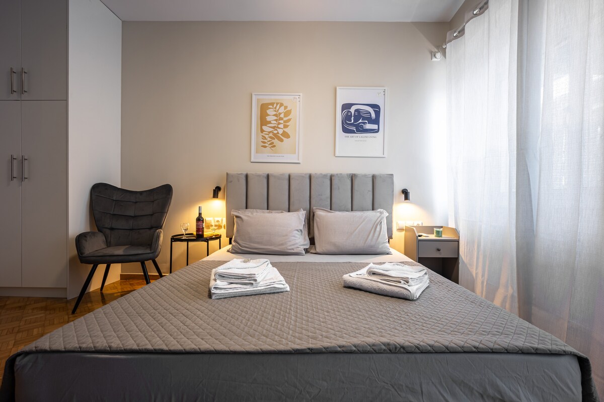 Κομψό ηλιόλουστο νέο υπνοδωμάτιο 2 υπνοδωματίων, Prime Central Athens