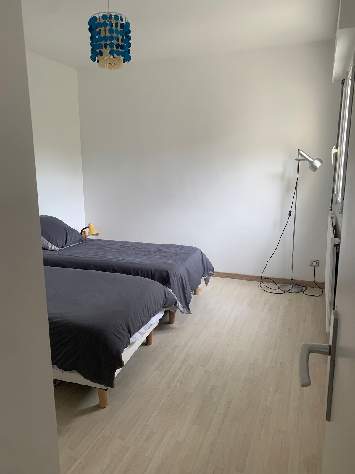 Chambre avec 2 lits jumeaux (transformable en lit-double avec 1 surmatelas). La chambre dispose d'un dressing avec miroirs ainsi qu'une porte fermant à clé. Bouilloire et bodum à disposition pour faire du café et du thé. Salle de bains avec baignoire et WC indépendant. Vous pourrez profiter du jardin extérieur, de la terrasse et des transats. Vous pourrez également admirer les poissons du bassin et les tortues dans leur parc clôturé. Bus à 200 mètres etTram ligne 5 à 600 mètres de la maison.