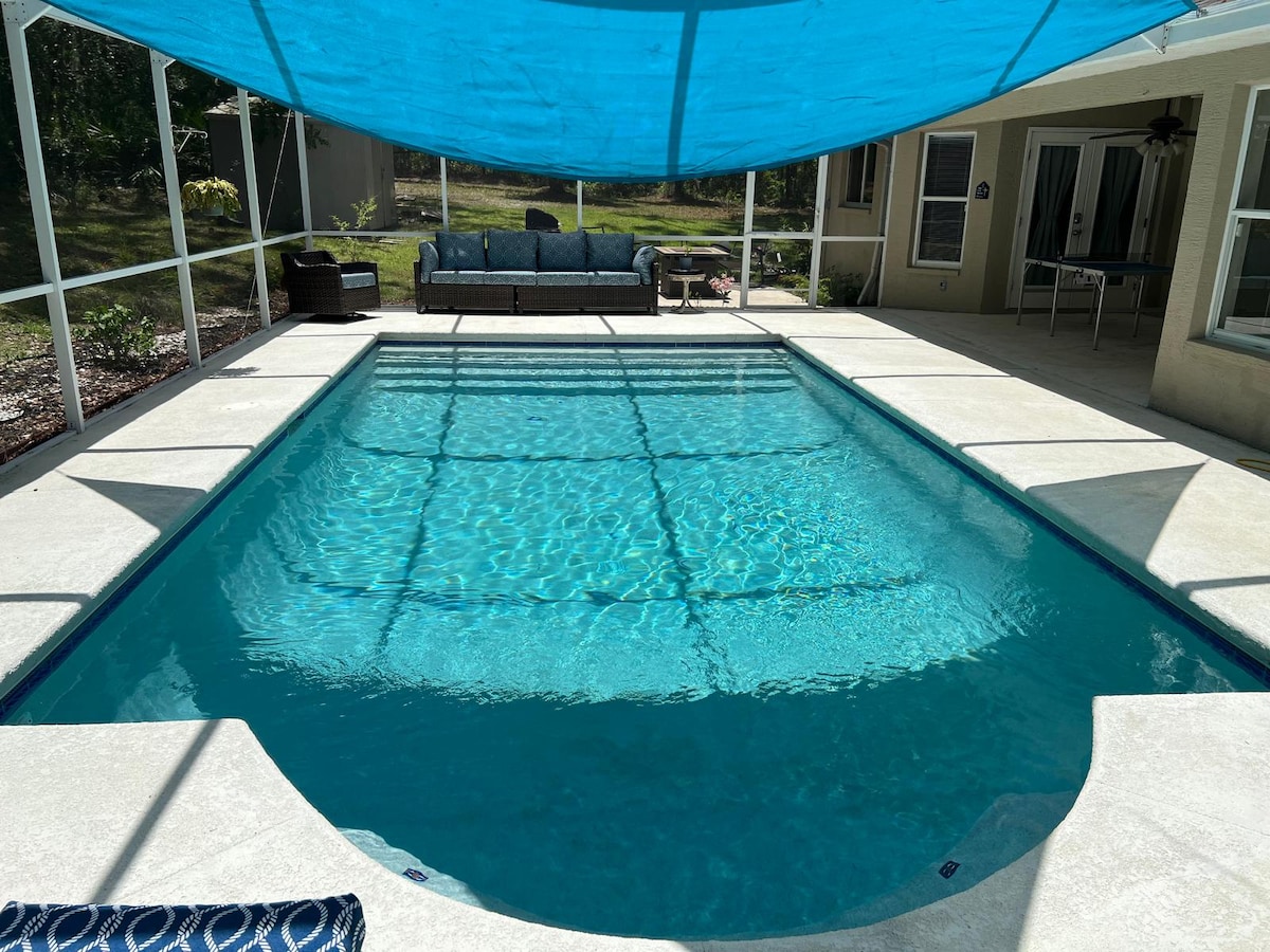 Δωμάτιο παιχνιδιών, θερμαινόμενη πισίνα, υπέρδιπλο κρεβάτι, κοντά στο Weeki Wachee