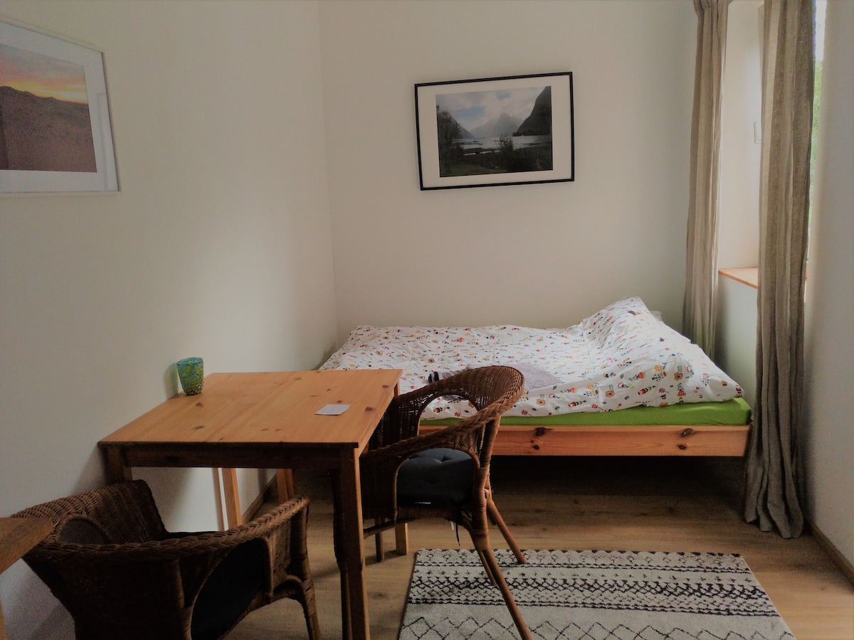 Αυτό το μικρό και άνετο διαμέρισμα βρίσκεται σε ένα προάστιο μεταξύ του Mainz και του Wiesbaden. Έχετε ιδιωτική είσοδο και έναν μικρό κήπο μπροστά από την πόρτα σας. Προσφέρει όλα όσα χρειάζεστε. Μια πλήρως εξοπλισμένη κουζίνα και ένα άνετο κρεβάτι 140x200cm και μια τηλεόραση. Ένα όμορφο μπάνιο με ντους και παράθυρο. Ανυπομονούμε να σας δούμε.