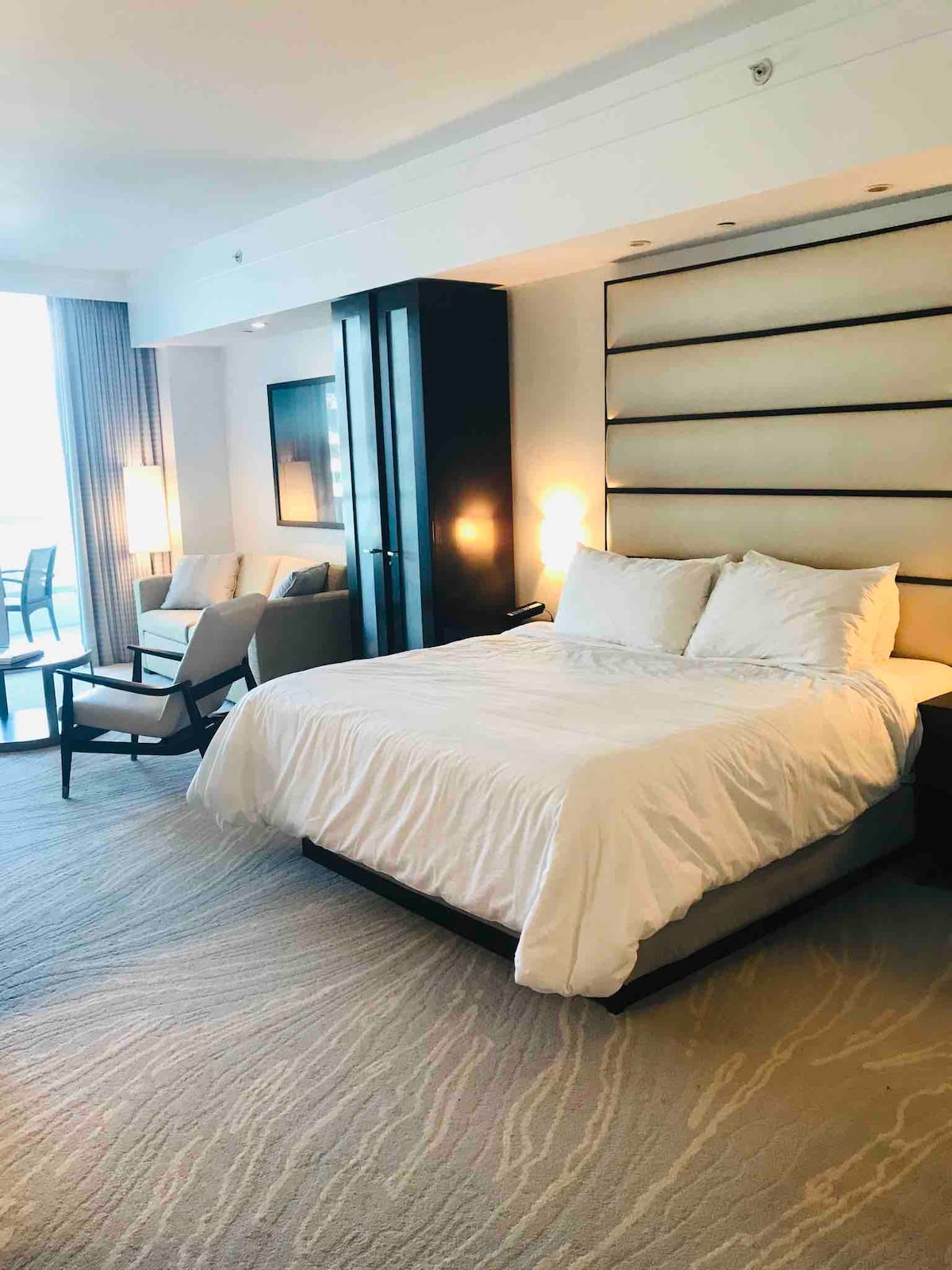 Προτιμάται η ελάχιστη διαμονή 7 διανυκτερεύσεων. Εάν θέλετε να κάνετε κράτηση για λιγότερες διανυκτερεύσεις, ρωτήστε πριν κάνετε κράτηση. Αν σας ζητήσω να αποσύρετε το αίτημα, μην αναστατωθείτε. Αυτή η ευρύχωρη μονάδα στούντιο βρίσκεται στον πύργο Sorrento του πολυτελούς ξενοδοχείου FOUNTAINEBLEU. Το Fontainebleau είναι ένα ακίνητο μπροστά στον ωκεανό στο Μαϊάμι Μπιτς. Στην τιμή της κράτησης περιλαμβάνονται οι φόροι/προμήθειες του θερέτρου και η πρόσβαση σε όλες τις ΠΑΡΟΧΈΣ, συμπεριλαμβανομένων των πισίνων, του γυμναστηρίου, της παραλίας. Θα πρέπει να πληρώσετε το κόστος καθαρισμού και στάθμευσης απευθείας στο ξενοδοχείο κατά την αναχώρηση.