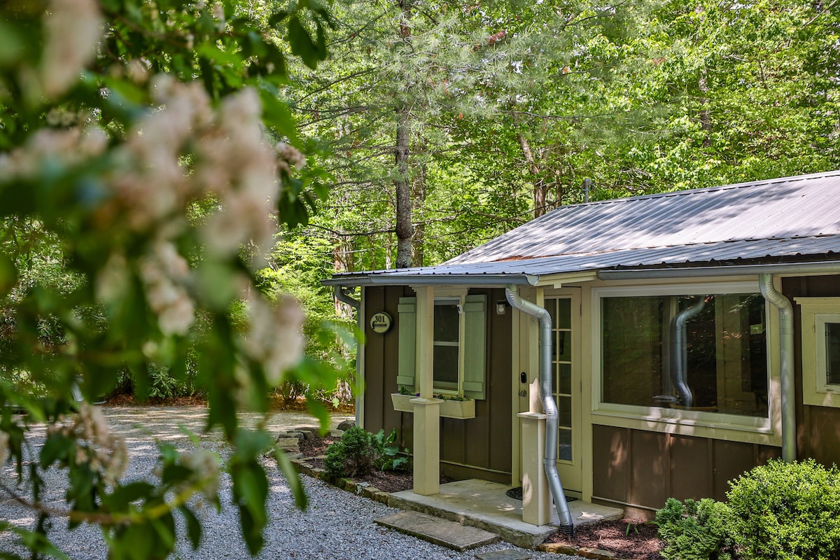 At 4000+ feet & only a 10 min walk to town on the Rhododendron Trail. Totally renovated 2017!! Light & sunny 3 bed/2 bath, 750 sq. ft. Originally built by my wife's g-grandmother in the 1940's. Floor to ceiling shiplap, 17 ft. ceilings, hardwoods, reclaimed barn wood, custom fixtures, heated marble/slate bath floors, tankless water heater, gas fireplace, porch, Wifi, TV, washer/dryer, kitchenette. Beautiful gardens! Classic Highlands charm with modern comforts! Hike, fish, shop, or relax!