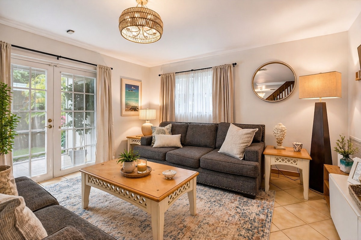 ΔΎΟ ΤΕΤΡΆΓΩΝΑ ΑΠΌ ΤΗ ΔΗΜΌΣΙΑ ΠΑΡΑΛΊΑ! Πλήρως ανακαινισμένο παραθαλάσσιο μοντέρνο εξοχικό σπίτι στην καρδιά του Deerfield Beach! Τόνοι χώρου με μεγάλη ιδιωτική/περιφραγμένη πίσω αυλή, μεγάλο χώρο πρασίνου και ψησταριά, πλυντήριο-στεγνωτήριο: όλα για δική σας προσωπική και αποκλειστική χρήση. Περπατήστε δύο τετράγωνα μέχρι τη δημόσια παραλία, την προβλήτα, τον πεζόδρομο, τη νυχτερινή ζωή και τα καταπληκτικά εστιατόρια. Σερφ, βαρκάδα, ψάρεμα, κολύμβηση στον ωκεανό. Δύο πολυτελή και καθαρά υπνοδωμάτια και δύο μπάνια, + καναπές-κρεβάτι queen size. Φωτεινή τραπεζαρία με τζαμαρία. Μπόνους δωμάτιο παιχνιδιών με πινγκ πονγκ!