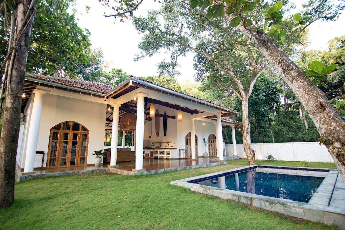 Πλήρως εξοπλισμένη βίλα 2 υπνοδωματίων με πισίνα και ιδιωτική άμεση πρόσβαση σε δημοφιλή σημεία για σερφ στη Madiha. Καθημερινή υπηρεσία καθαρισμού και υπηρεσία σεφ με προειδοποίηση. Η Madiha είναι ήρεμη και όμορφη, πολύ κατοικημένη περιοχή. Κοντά στο διάσημο σπίτι των γιατρών και σε πολλά άλλα μέρη, κοντά στην παραλία Polhena, Mirissa και Weligama. Όλες οι προμήθειες είναι σε κοντινή απόσταση. Μπορείτε να κολυμπήσετε με χελώνες και να κάνετε πολλές άλλες δραστηριότητες γύρω από τη βίλα.