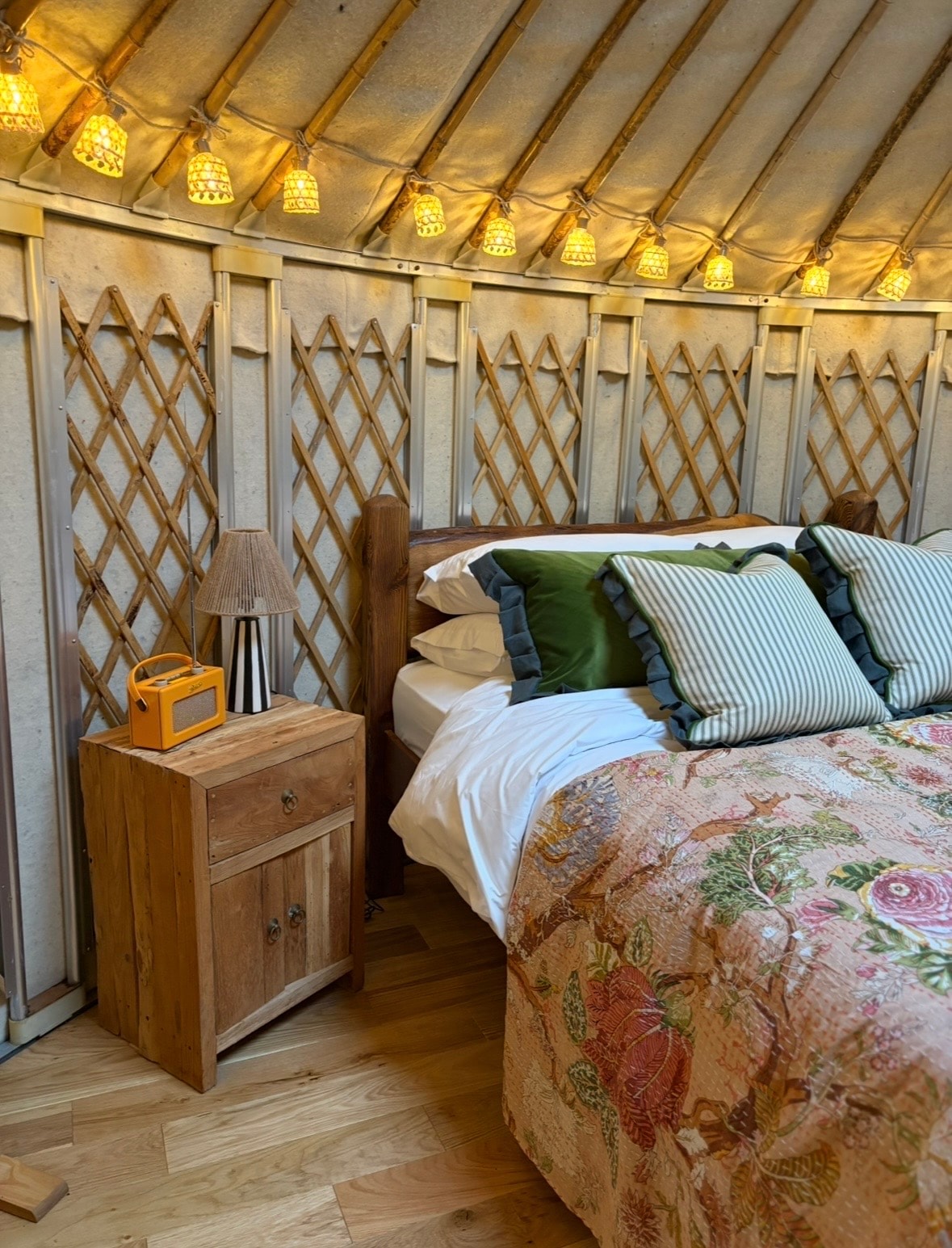 Η γιούρτα προσφέρει Glamping σε άλλο επίπεδο. Ξύλινο πλαίσιο με εξωτερικό χώρο με ξύλινο δάπεδο, υπάρχει ό,τι θα μπορούσατε να επιθυμήσετε, πλήρως εξοπλισμένο με έξυπνη τηλεόραση, ξυλόσομπα, διπλό κρεβάτι και καναπέ, εξατομικευμένη κουζίνα με τοστιέρα, βραστήρα, φούρνο μικροκυμάτων, ρετρό ψυγείο, εστία 2 ματιών και πλήρη νεροχύτη Belfast. Το μπάνιο διαθέτει τουαλέτα, ντους και νιπτήρα και έξω υπάρχει ο πρόσθετος χώρος με ξύλινο δάπεδο, ιδανικός για φαγητό σε εξωτερικό χώρο και για να απολαύσετε το τζακούζι!