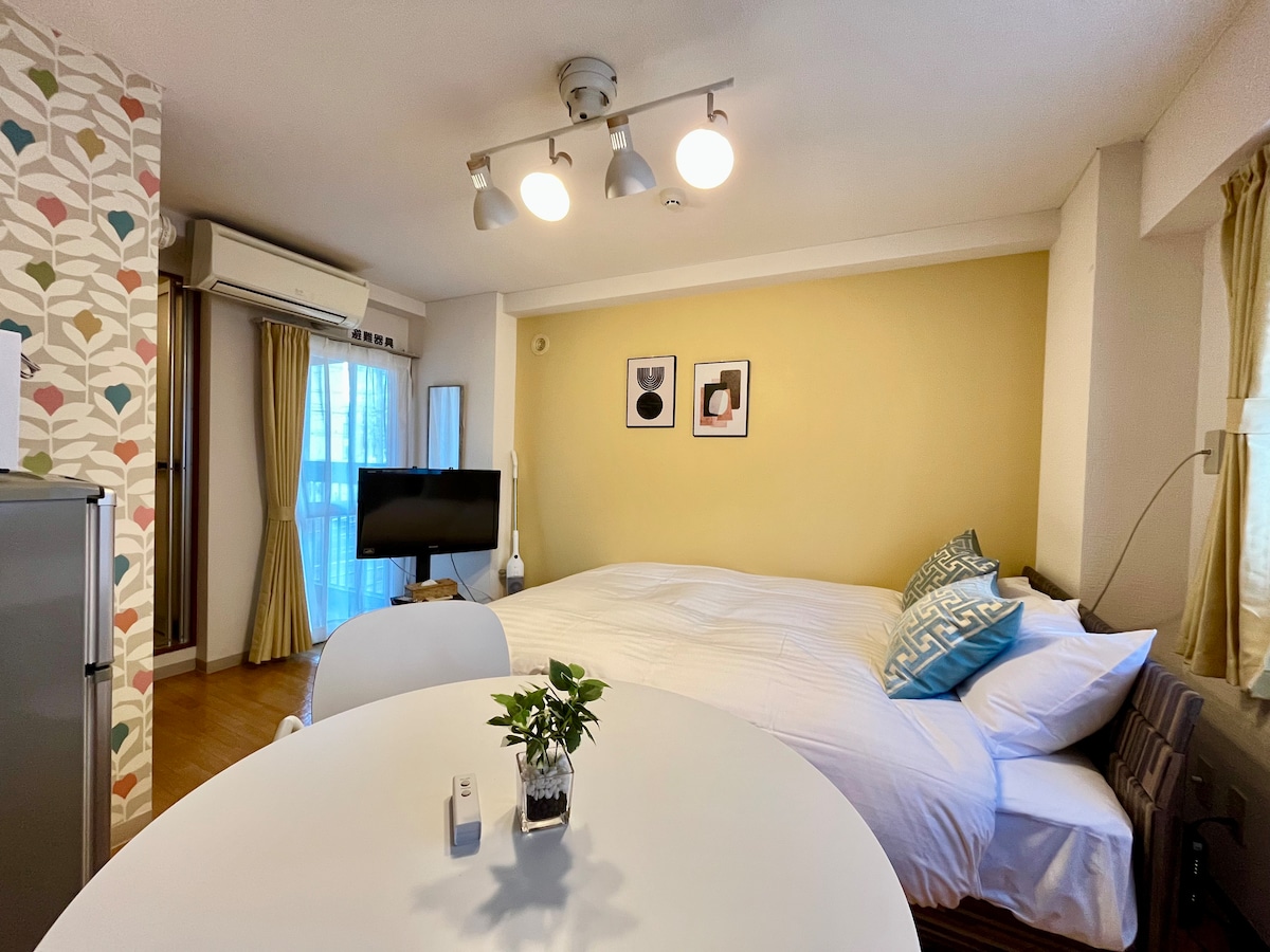 Καλή τοποθεσία! Χρειάζονται 12 λεπτά με το μετρό από τον πλησιέστερο σταθμό μέχρι τον σταθμό Odori στο、 κέντρο! Άνετο δωμάτιο. 1. Το δωμάτιο έχει ένα διπλό φουτόν και ένα μονό φουτόν. 2. Το δωμάτιο διαθέτει ένα θερμαντικό σώμα και δύο ανεμιστήρες, καθώς και τηλεόραση, πλυντήριο ρούχων, φούρνο μικροκυμάτων, ψυγείο, πιστολάκι μαλλιών, σαμπουάν/μαλακτικό και σαπούνι σώματος. 3. Μπορείτε να χρησιμοποιήσετε ηλεκτρική κουζίνα, κατσαρόλα και τηγάνι για να μαγειρέψετε (απαιτείται κράτηση εκ των προτέρων). 4. Ο πλησιέστερος σταθμός του μετρό είναι ο σταθμός Nango-Jusan(13)Come, 5 λεπτά με τα πόδια από το δωμάτιο. 5. Δωρεάν wifi