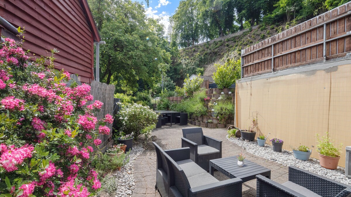 120 m² γοητευτικό διαμέρισμα με ονειρική θέα στο κάστρο Montabaur και πολύ πράσινο: ανοιχτός χώρος καθιστικού/μαγειρέματος, 2 υπνοδωμάτια, μπάνιο με μπανιέρα + ντους, επιπλέον τουαλέτα επισκεπτών. Τηλεόραση, wifi. Τεράστιος κοινόχρηστος κήπος, ιδιωτικό πάρκινγκ με ηλεκτρικό σταθμό φόρτισης. Χώρος στάθμευσης για ποδήλατα, σκούτερ και καροτσάκια. Απευθείας στο Gelbach - πεζοπορία & ποδηλασία μπροστά από την πόρτα, παλιά πόλη, REWE, εστιατόρια 2 λεπτά με τα πόδια, σταθμός ICE 10 λεπτά.