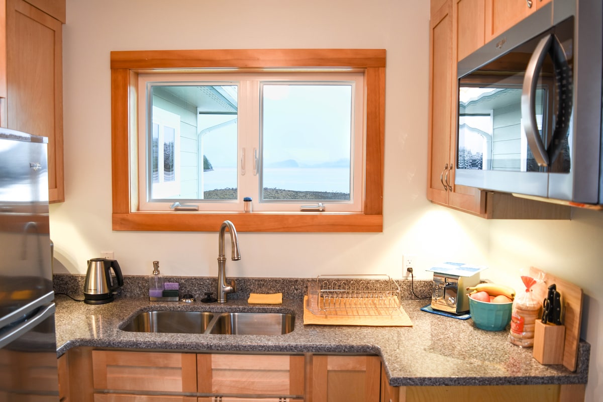 Αυτό το ιδιωτικό διαμέρισμα 2 υπνοδωματίων μπροστά στον ωκεανό απέχει λίγα βήματα από την παραλία. Μπορείτε να δείτε αετούς, ελάφια, σολομούς, φάλαινες και πολλά άλλα από το σαλόνι, το κύριο υπνοδωμάτιο και την καλυμμένη βεράντα αυτού του διαμερίσματος στον δεύτερο όροφο. Έχουμε 2 καγιάκ για τη χρήση σας κατά τη διαμονή σας, καθώς και έναν υπαίθριο χώρο ψησίματος και μια όμορφη παραλία.