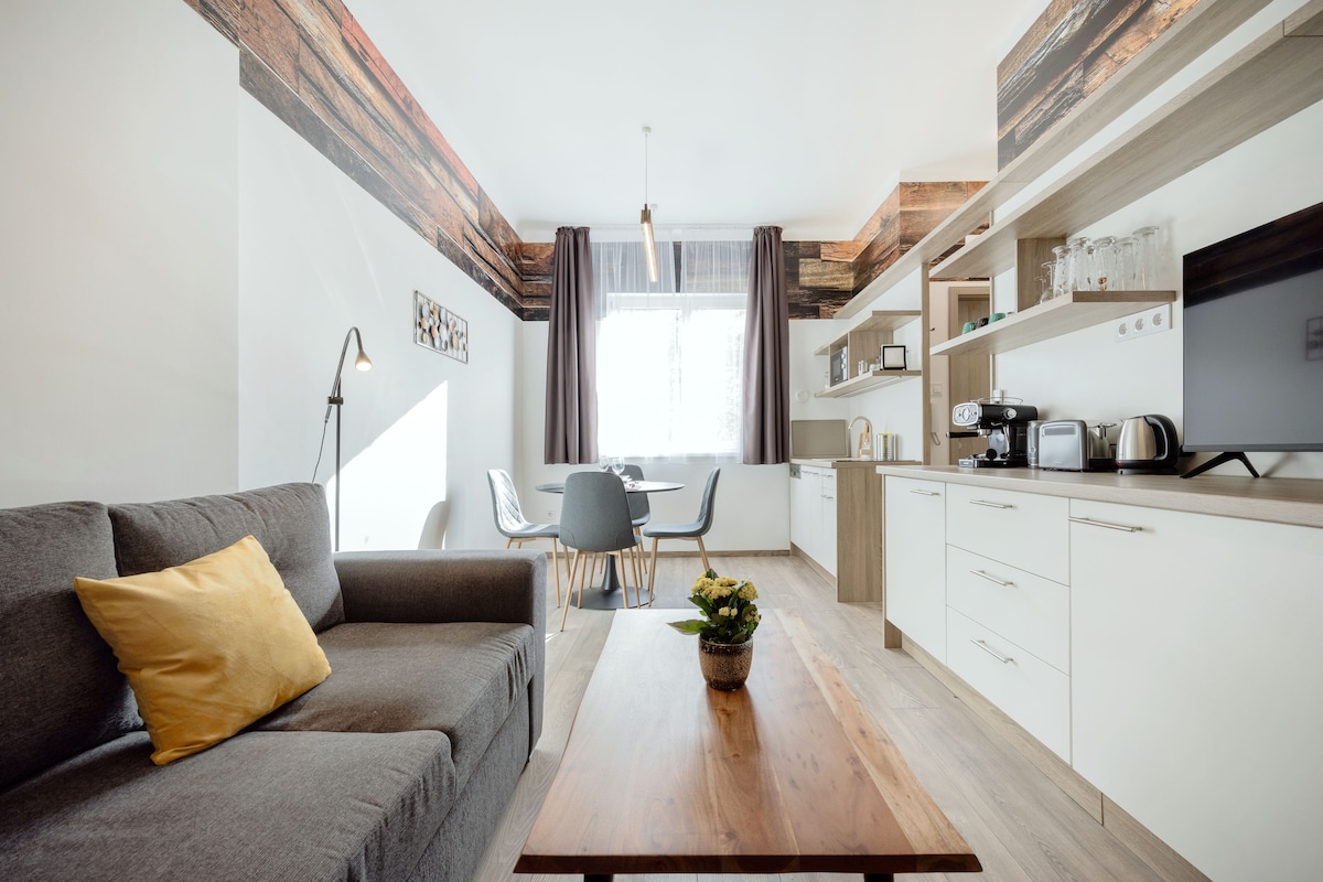 Απολαύστε τη διαμονή σας περιτριγυρισμένοι από αυθεντικά ανατολικοευρωπαϊκά έπιπλα με χαρακτηριστικό σχεδιασμό που ήταν πολύ δημοφιλής στα μέσα του περασμένου αιώνα. Το κτίριο με την αυλή του χρονολογείται από το 1914 και χτίστηκε σύμφωνα με τις συγκεκριμένες απαιτήσεις ενός κατασκευαστή επίπλων εκείνης της εποχής. Το ψηλό ταβάνι, τα ξύλινα παντζούρια και τα ξύλινα περβάζια των παραθύρων αναδεικνύουν την ομορφιά αυτής της περιόδου. Καθισμένος στο άνετο μπαλκόνι, πίνοντας ένα ποτήρι κρασί μπορείτε να βυθιστείτε και να νιώσετε την ατμόσφαιρα της πόλης.