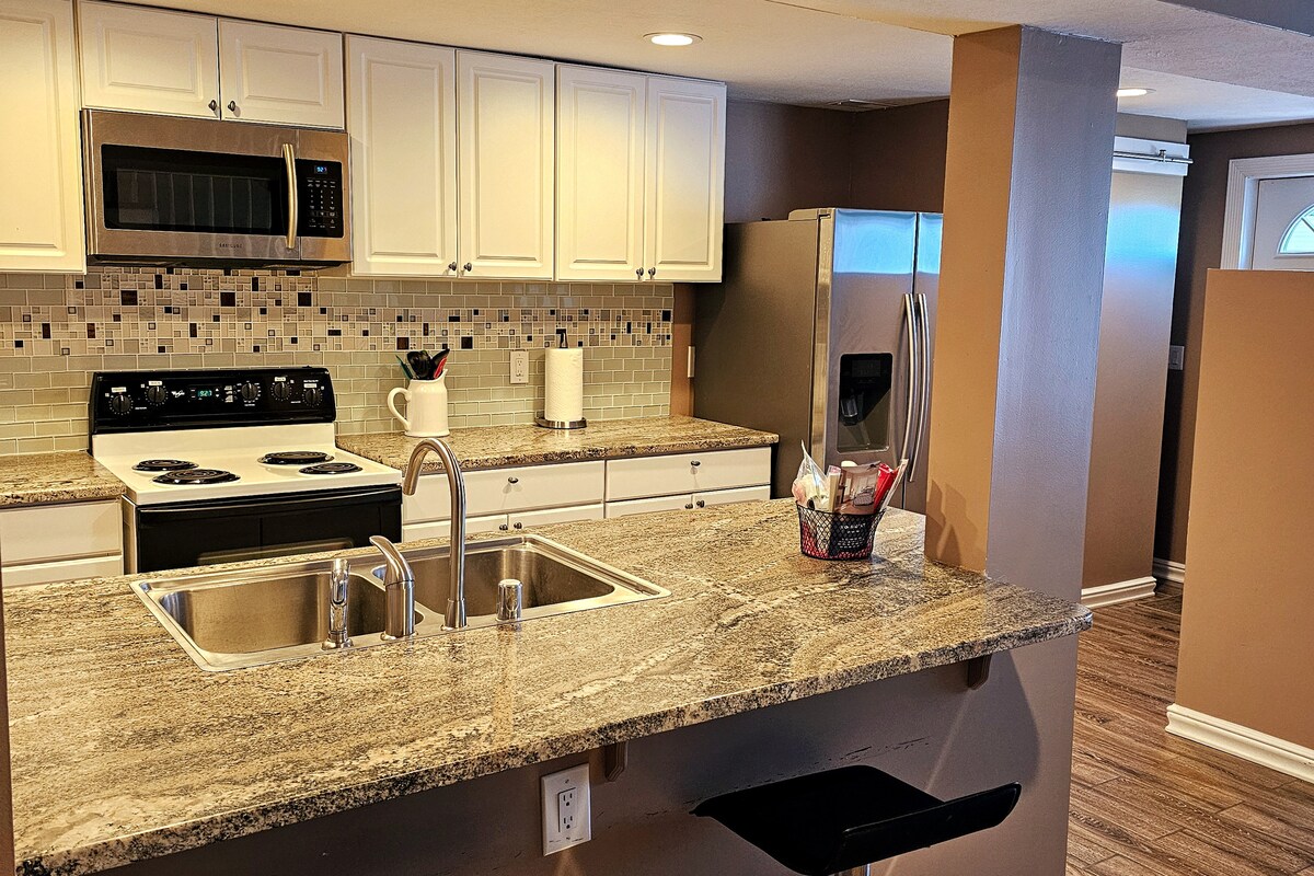 Χαλαρώστε σε αυτόν τον ήρεμο, κομψό χώρο. Αυτό το διαμέρισμα διαθέτει 2 υπνοδωμάτια και 1,5 μπάνιο. Διαθέτει μια πολύ ωραία κουζίνα με καθίσματα μπαρ και ξεχωριστό χώρο για φαγητό. Πλυντήριο και στεγνωτήριο πλήρους μεγέθους. Υπάρχει επίσης ιδιωτικό μπαλκόνι σε ένα από τα υπνοδωμάτια του επάνω ορόφου.