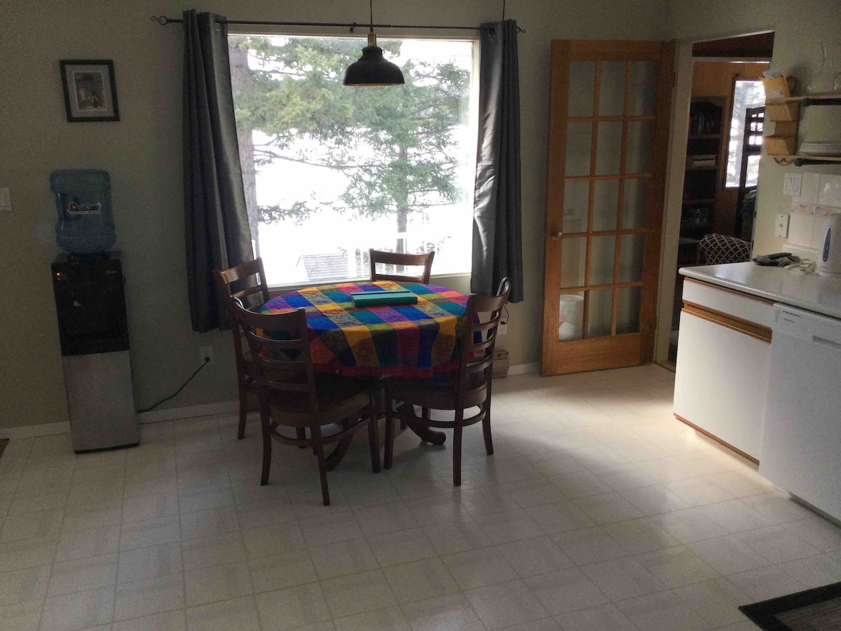 Welcome to our family’s lakefront house. We hope you create many beautiful memories with your own family and friends. Located 1 hour and 15 mins away from 100 Mile House. Enjoy ice skating, snowmobiling in the winter; fishing, kayaking and other watersports in the summer, all right on the lake outside the front door. Close to many other large lakes for boating and fishing. There are large open spaces and well thought out floorplan for large families or groups of friends! Enjoy your stay!