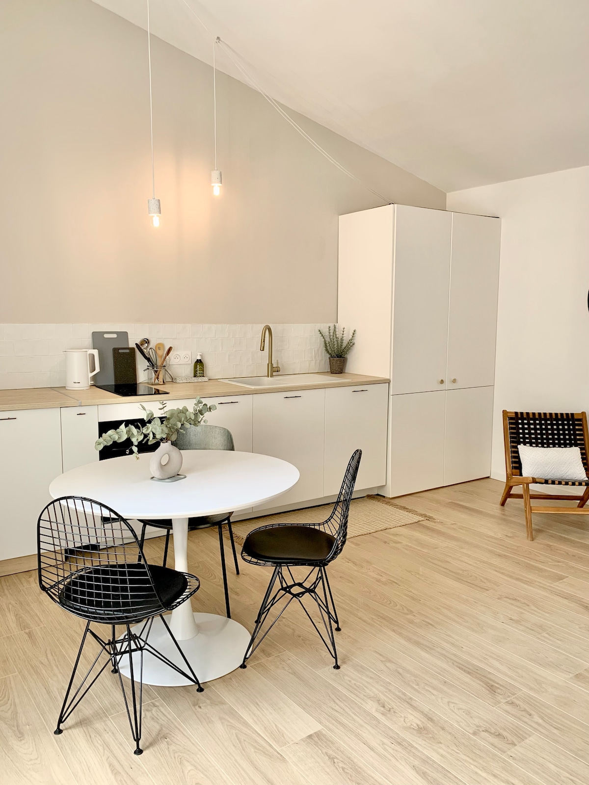 18th century apartment in area Sainte Croix & Saint Michel on quiet square. 3 minutes from riverside, five minutes from Saint Michel Tram C & D. Views of Hôtel de la Monnaie and Saint Michel tower. 70 m2 recently renovated furnished with antiques provides a modern-authentic Bordeaux experience. Kitchen fully equipped, large living and dinning room, high quality beds, spacious bathroom with bathtub and shower, free WiFi, TV, Blu-ray, and espresso machine.