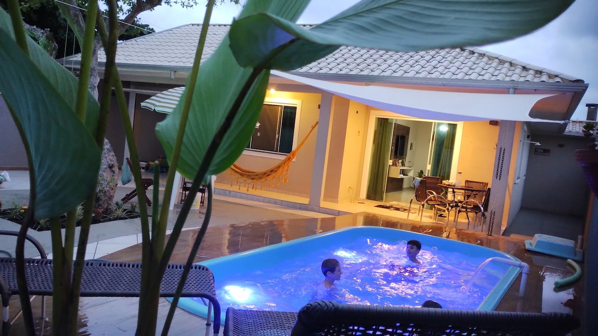 Μέσα στο πράσινο των δέντρων και των φυτών, το σπίτι doce jardim σάς προσκαλεί να χαλαρώσετε. Απέχει μόλις 150 μέτρα από την παραλία, κοντά στο κέντρο του Matinhos, στο Sesc, μπορείτε να απολαύσετε την ευκολία της μετακίνησης με τα πόδια σχεδόν παντού. 260 μέτρα από τη σκηνή των καλοκαιρινών παραστάσεων. Πλήρης κουζίνα, εξωτερική ψησταριά με ομπρέλα, αιώρες, άφθονος χώρος στάθμευσης και κλιματισμός στα δωμάτια εγγυώνται την άνεσή σας. Το μικρό σας κατοικίδιο είναι ευπρόσδεκτο. Παρέχουμε κλινοσκεπάσματα, τραπεζομάντηλα και πετσέτες μπάνιου.