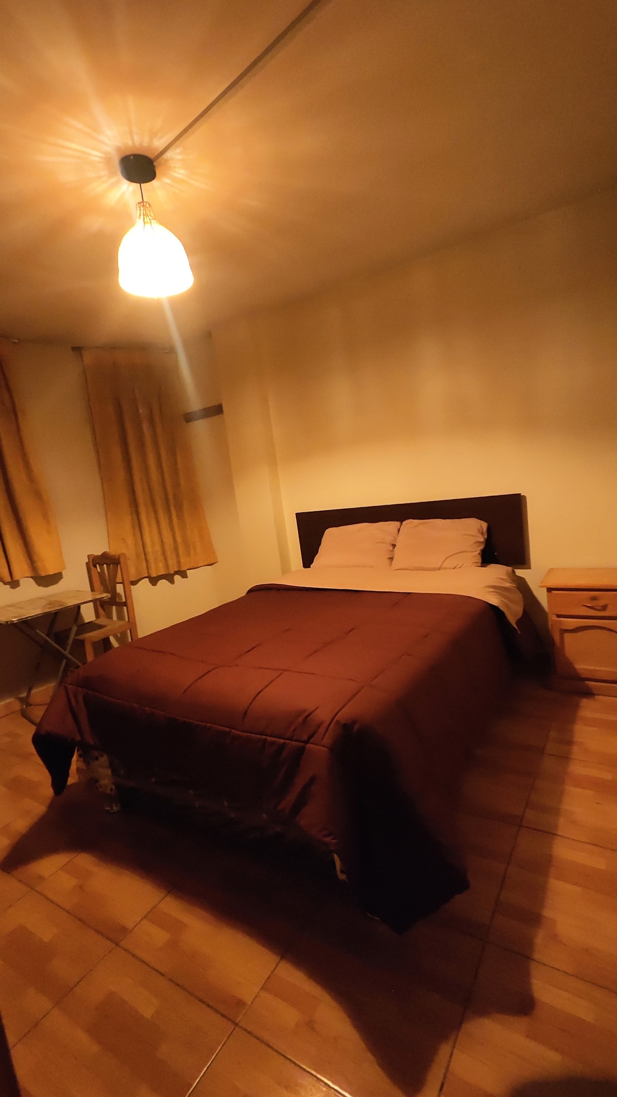 Departamento acogedor, familiar, excelente ubicación, cerca a la plaza de armas, 14 minutos caminando y 5 minutos en auto. El departamento es muy espacioso, cuenta con una amplia sala, 01 baño con ducha, 01 cocina y 3 habitaciones, tres camas de 2 plazas y 1 cama de 1.5 plaza. Cuenta con mobiliario, TV, radio, muebles, artículos de menaje, cocina, para que disfrutes tu estadía. Todo el departamento esta a su disposición, el departamento se encuentra en un 2do piso y la zona es muy segura.