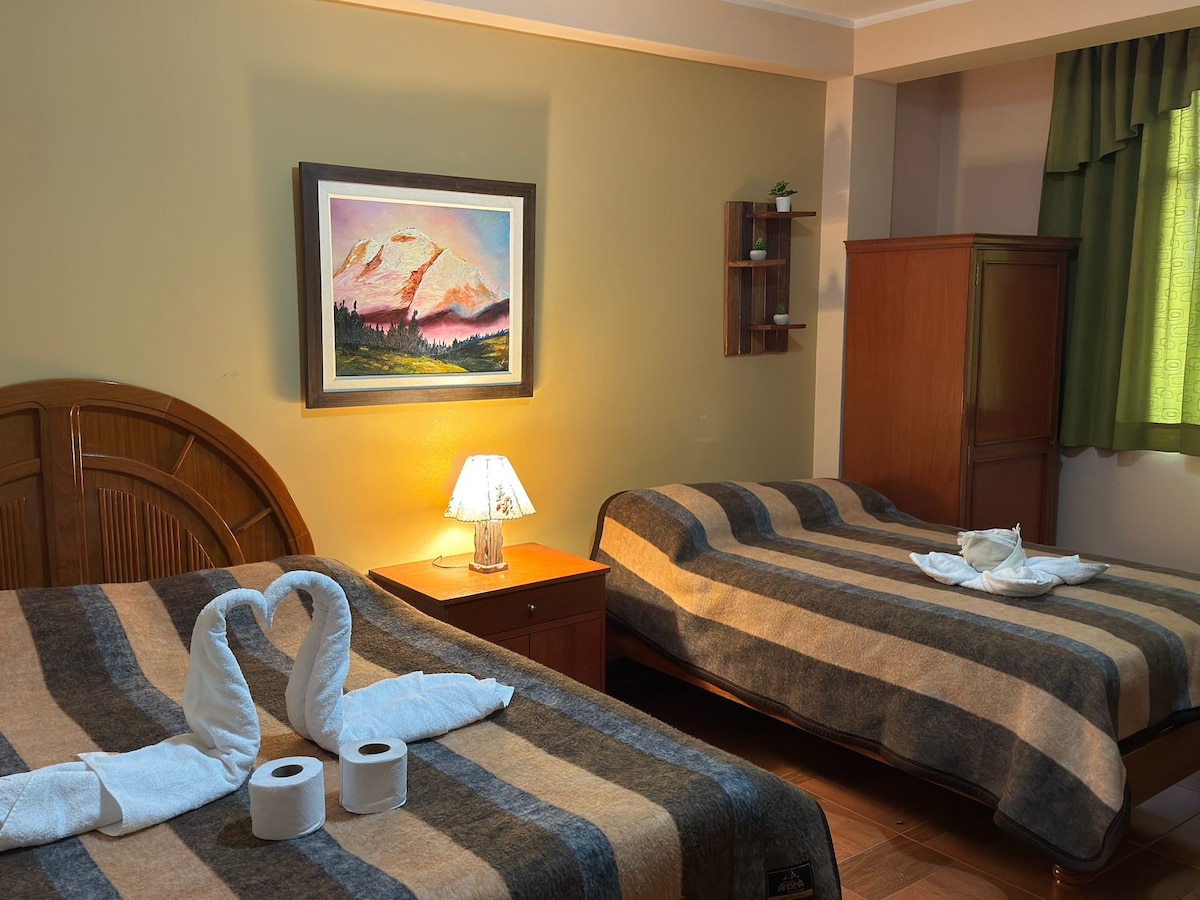 Απολαύστε την απλότητα και την ηρεμία σε μια κεντρική τοποθεσία, φτάστε στην πλατεία HUARAZ σε 1 λεπτό με τα πόδια, κοντά σε τράπεζες, αγορές, φαρμακεία, εστιατόρια, διασκέδαση σε κοντινή απόσταση. Τα δωμάτια διαθέτουν: - Ιδιωτικό μπάνιο, ζεστό ντους 24 ώρες το 24ωρο, φυσικό αέριο και ηλιακό σύστημα. - Έξυπνες τηλεοράσεις, για τη διασκέδασή σας. - WiFi υψηλής ταχύτητας - Κατά την άφιξη θα βρείτε: πετσέτες, χαρτί και σαπούνι. - Ζεστό νερό στο Termos για τους φίλους της κόκας και άλλους.