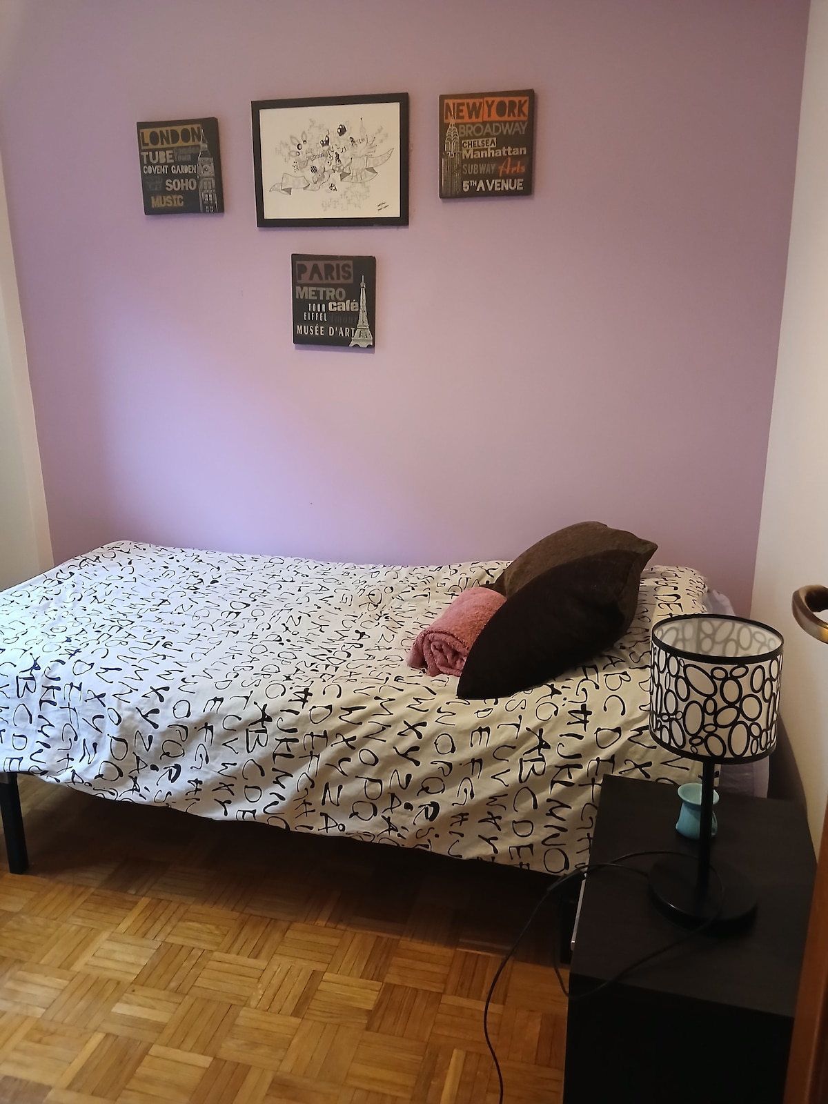 Δύο υπνοδωμάτια (κρεβάτι υπνοδωματίου 1,35 + γραφείο) και ιδιωτικό μπάνιο σε κοινόχρηστο διαμέρισμα με τον οικοδεσπότη. Στην Αραβάκα, 20 λεπτά από το κέντρο της Μαδρίτης. Ασφαλής χώρος, καλό επίπεδο, ζωντανή, πράσινη και όλες οι παροχές. Καλή σύνδεση με λεωφορείο ή τρένο Cercanías. Σύνδεση με το αεροδρόμιο με τρένο. Θα σας αρέσει η ανεξαρτησία και η ευρυχωρία του ιδιωτικού σας χώρου και της γειτονιάς με τα καταστήματα, τα εστιατόρια και τα μπαρ. Ευρωπαϊκό πρωινό που περιλαμβάνει: καφέ, τσάι, τοστ, φρούτα, γιαούρτι, γιαούρτι, γάλα (όχι μαγειρεμένο)...