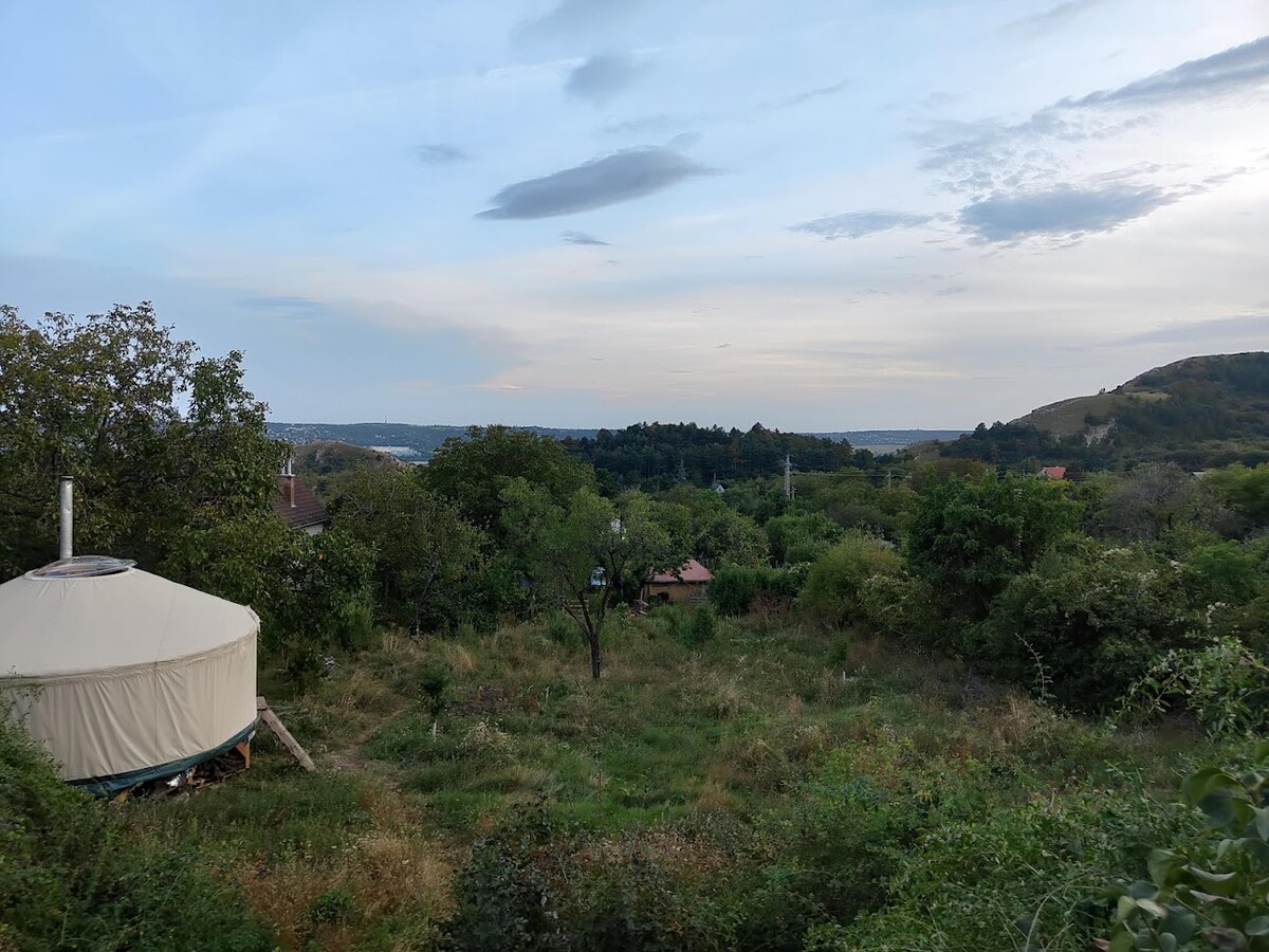 Reconnect with nature at this unforgettable escape. Enjoy a retreat in the rural Hungarian countryside in our lovely valley. The national blue hiking trail passes this 2.5-hectare land and you can reach in less than 5kms the Roman waterfall walking by the Gaja stream. Easy access by car, 1.5 hours from Budapest, 30 minutes from Veszprém, and 40 minutes to Lake Balaton. The yurt is very modern, with all amenities available. Surrounded by an in-progress permaculture garden and the Bakony forest.