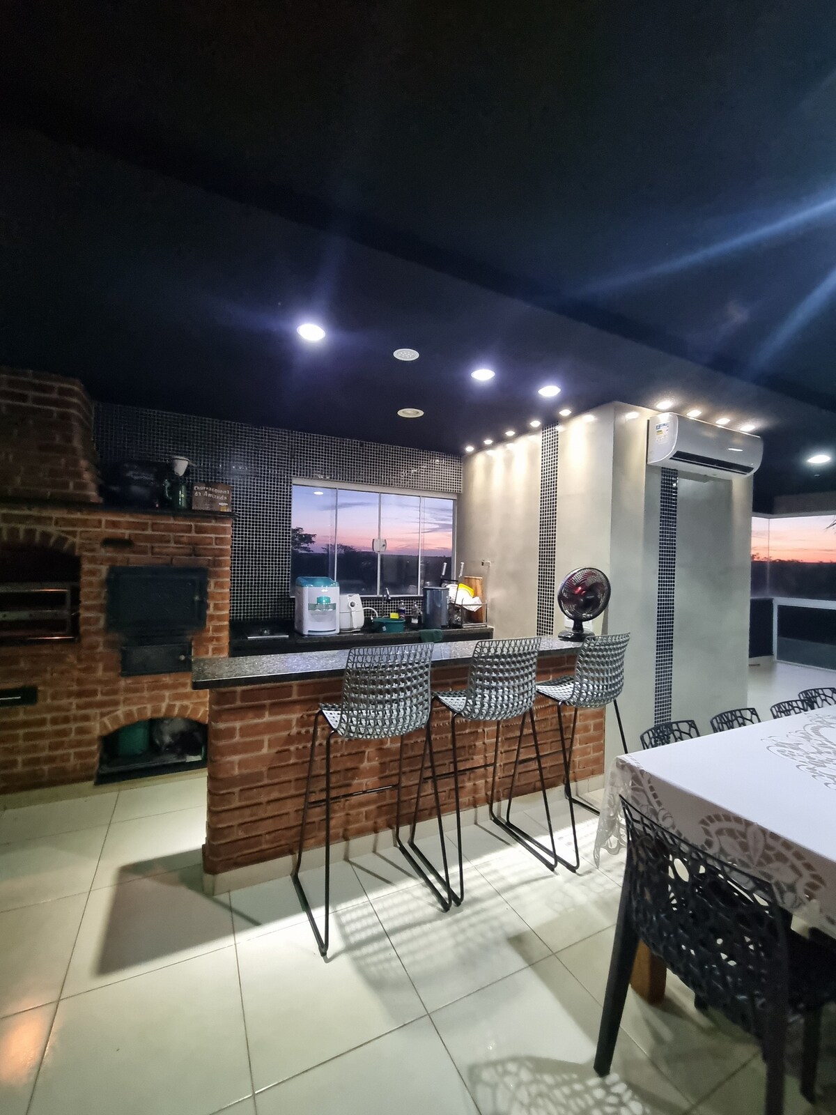 Localizado as margens do rio Tietê, conta com piscina aquecida, 1 banheiro externo, câmeras de segurança, churrasqueira interna, campo de futebol, casinha para crianças, Wi-Fi, cozinha bem equipada (fogão com 2 fornos, 2 refrigeradores, 1 freezer, microondas, air fryer, cafeteira, batedeira de bolo, liquidificador e bebedouro de água natural e gelada), ar condicionado nas 3 suites, 2 televisores, tv a cabo, mesa de bilhar e próximo à cidade.