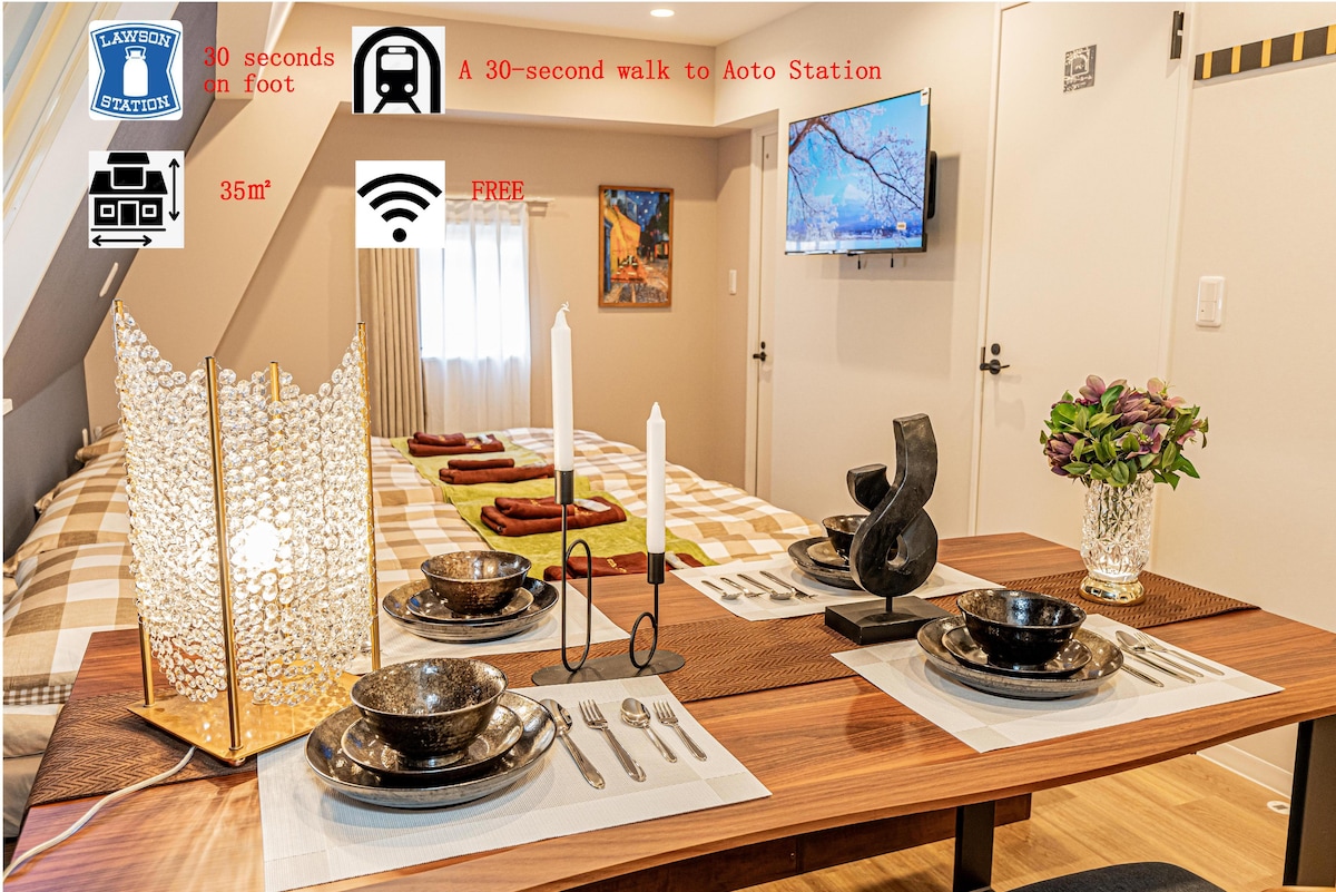 ★Welcome to our cozy Japanese-style tatami apartment located in Aoto, Katsushika, Tokyo. ★The apartment is 35㎡ with a spacious 1K layout and a traditional tatami sleeping area, accommodating up to 4 guests. ★Located at Aoto 3-37-6 on the 4th floor, the building has an elevator directly to the unit—very convenient for guests with large luggage and elderly travelers. ★Only a 1-minute walk to Keisei Aoto Station, offering extremely convenient access to central Tokyo and airports.
