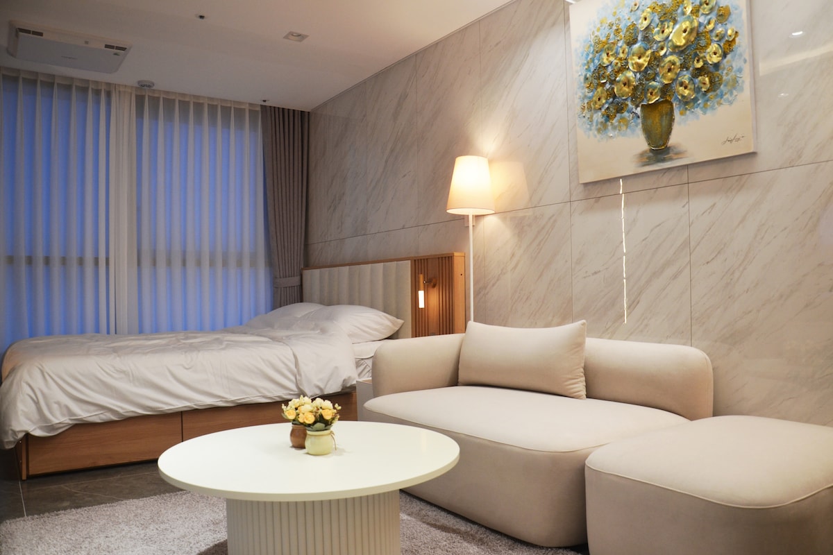 Βρίσκεται στο κέντρο της Σεούλ και είναι ένας χώρος που συνδυάζει την ευκολία της τοποθεσίας με το κομψό στυλ. Είναι ένα πολυτελές ξενοδοχείο-κατοικία σε ένα νέο κτίριο που κατασκευάστηκε το δεύτερο εξάμηνο του 2023. Περιλαμβάνονται πλυντήριο και στεγνωτήριο, κουκέτας, κρεβάτι queen size και καναπές-κρεβάτι, υψηλής ποιότητας κουζινικά, καθώς και φίλτρο νερού και καφετιέρα. Ο χώρος είναι ευρύχωρος και η διακόσμηση είναι πολυτελής, ώστε να μπορείτε να απολαύσετε την καλύτερη ξεκούραση. Θα κάνουμε ό,τι καλύτερο μπορούμε για να σας προσφέρουμε μια άνετη ξεκούραση κατά τη διάρκεια της διαμονής σας.