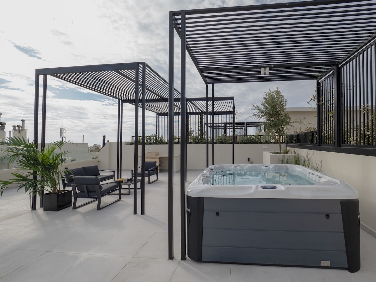 Enjoy this newly-built 81m² abode, finalized in 2024. This stylish and cosy flat is perfectly suited to host up to 6 guests. A generous living space with an open layout , a modern kitchen equipped with the latest appliances and a master bedroom offering a walk in closet and an ensuite shower. The 2nd bedroom and bathroom ensure ample room for comfort. The exclusive rooftop access complete with a Jacuzzi, roof garden, and barbecue area provides an exceptional setting for memorable evenings.