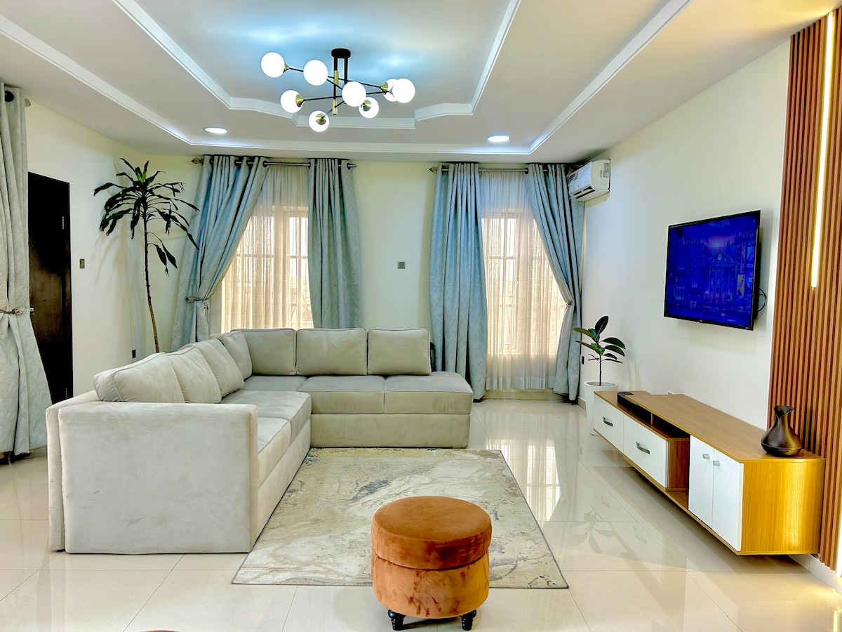 Ζήστε την πολυτέλεια σε αυτό το κομψό διαμέρισμα 3 υπνοδωματίων με ιδιωτικά μπάνια και κομψούς εσωτερικούς χώρους. Μόλις 5 λεπτά από το αεροδρόμιο του Λάγος και 3 λεπτά από το Ikeja City Mall. Απολαύστε γρήγορο WiFi 5ης γενιάς, έξυπνη τηλεόραση, κλιματισμό, πλήρως εξοπλισμένη κουζίνα, πλυντήριο/στεγνωτήριο και ρεύμα 24 ώρες το 24-ωρο σε ένα περιφραγμένο κτήμα με ομοιόμορφη ασφάλεια. Ιδανικό για οικογένειες, ομάδες ή επαγγελματίες ταξιδιώτες. Check-in χωρίς παρουσία οικοδεσπότη και επαγγελματική διαχείριση για μια απρόσκοπτη διαμονή.