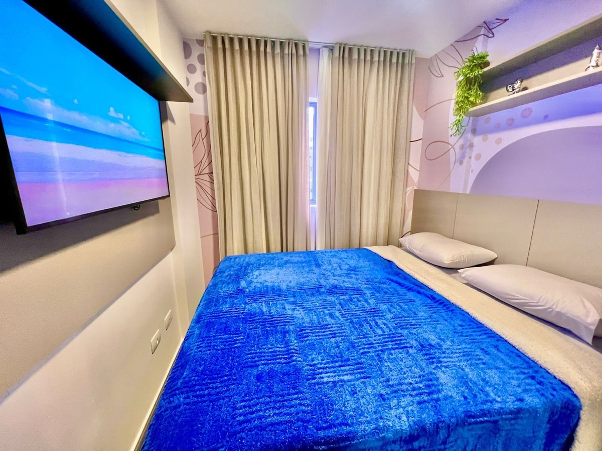 Πλήρες στούντιο για (2) δύο άτομα, με χώρο στάθμευσης, που βρίσκεται (1) ένα τετράγωνο από το PUC. Με κλιματισμό, Wi-Fi με μεγάλη ταχύτητα, Smart TV, διπλό κρεβάτι, εξοπλισμένη κουζίνα, κλινοσκεπάσματα και πετσέτες, σαμπουάν, σαπούνι, γραφείο, πιστολάκι για τα μαλλιά, σίδερο, δίπλα στο Shopping Estação, Carrefour και άλλες αγορές, αρτοποιεία και εστιατόρια. Είναι εξαιρετικά άνετο με όλες τις ασφάλειες, με check-in/check-out χωρίς παρουσία οικοδεσπότη.
