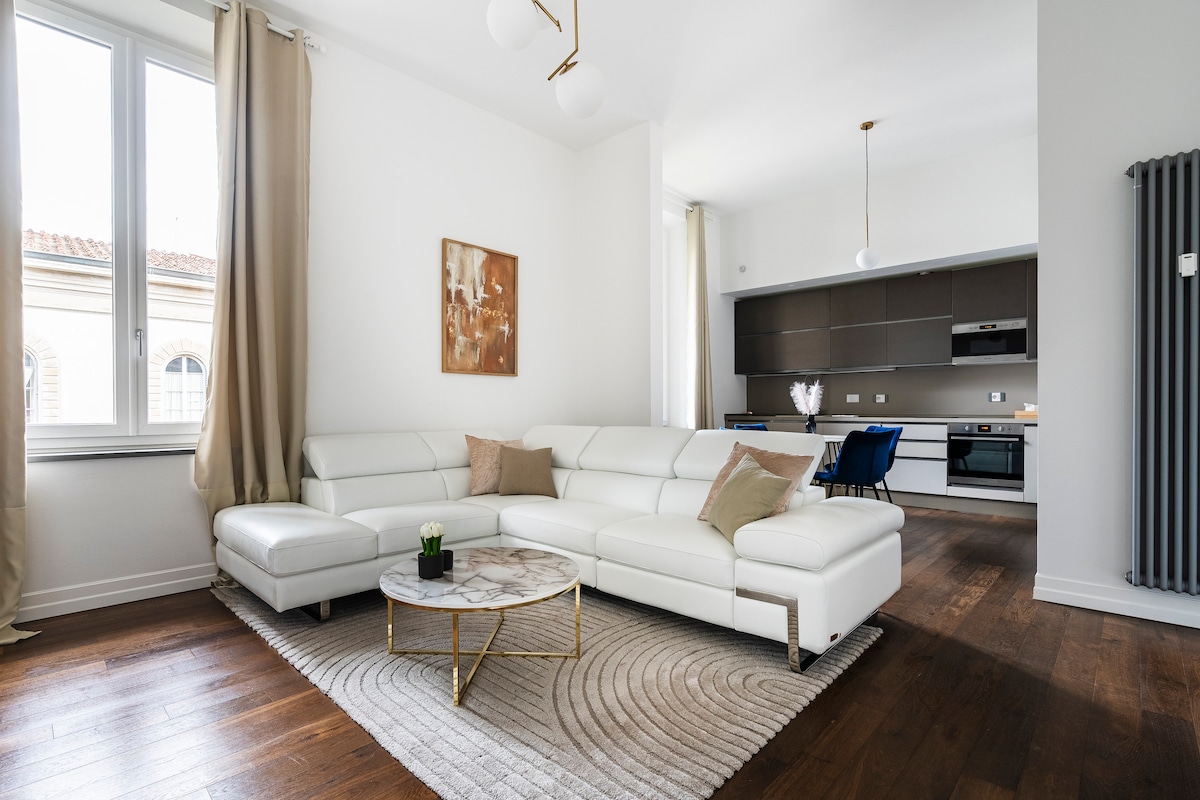1.292 τετραγωνικά πόδια σε πραγματικό μάρμαρο Carrara και τοσκανικό ξύλο στον πολυτελή κεντρικό και όμορφο δρόμο της Φλωρεντίας, μια νέα κατασκευή από πραγματικά φυσικά υλικά. Η αντίθεση μεταξύ αυτών των 2 φυσικών υλικών είναι επαναλαμβανόμενα στοιχεία του χώρου. Η είσοδος παρουσιάζεται με το σαλόνι, τους μεγάλους καναπέδες και το γυάλινο μπάνιο. Η κουζίνα με εξατομικευμένες συσκευές και μάρμαρο. Η νησίδα είναι από μάρμαρο, με ένα οβάλ τραπέζι 4 θέσεων. Το υπνοδωμάτιο έχει υπέρδιπλο κρεβάτι 6,56x6,56 πόδια. 3 θέα στη Via Vigna Nuova.