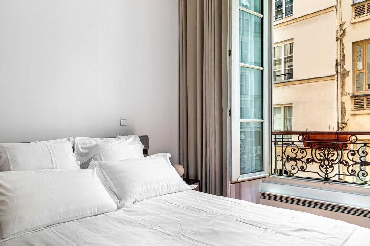 Appartement climatisée de 60 m2 à l’agencement haut de gamme dans l’hyper centre de Paris quartier historique de Montorgueil, célèbre pour ses commerces de bouches, ses petits bistrots et restos. L’appartement se situe au 1 er étage d’un immeuble dans une rue très calme. Il a été refait à neuf en 2023 par une célèbre architecte et donc très bien agencé avec des équipements de très haut standing. Vous y serez comme dans une suite d’hôtel avec le charme en plus, d’un vrai logement parisien.