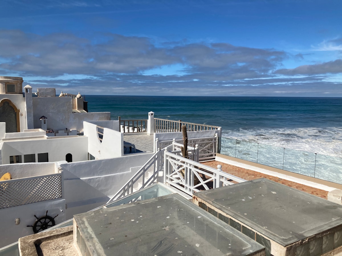 ΙΔΑΝΙΚΟ για ΖΕΥΓΑΡΙΑ και ΣΥΝΑΝΤΗΣΕΙΣ ΦΙΛΩΝ. ΙΔΑΝΙΚΌ για ΟΙΚΟΓΈΝΕΙΕΣ. Στην καρδιά της παλιάς μεντίνας, πάνω στα τείχη με τον ωκεανό να σκάει από κάτω, το Dar Evening Star διαθέτει 2 πολυτελείς σουίτες με θέα στη θάλασσα, ένα επιπλέον άνετο υπνοδωμάτιο, 3 βεράντες με θέα στη θάλασσα, τέσσερις τουαλέτες, τρία ντους, μπανιέρα, 3 καναπέδες και πολλές δερμάτινες καρέκλες. Επιπλέον, τζάκια, home cinema, τραπέζι με σκάκι, δωμάτιο πλυντηρίου και μια εξαιρετική, καλά εξοπλισμένη κουζίνα. Ένα καταφύγιο γαλήνης λίγα μόνο βήματα από καφετέριες, εστιατόρια και καταστήματα.