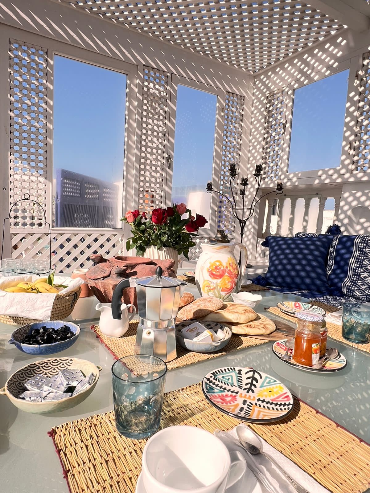 Μείνετε σε ένα γοητευτικό Ριάντ που σας προσφέρει την πολυτέλεια της αποκλειστικότητας, με θέα στη θάλασσα και τη Σκάλα, συμπεριλαμβανομένου πρωινού και καθαρισμού. Μια απόλυτη βουτιά στην μοναδική ατμόσφαιρα της Εσαουίρα. Ιδανικό για ομαδικές ή οικογενειακές διακοπές, ο καθένας θα βρει τον χώρο του ενώ μοιράζεται πολύτιμες στιγμές. Με την εξαιρετική του τοποθεσία, τις ηλιόλουστες βεράντες και το εξυπηρετικό προσωπικό, το Ριάντ μας είναι το ιδανικό σκηνικό για αξέχαστες διακοπές χωρίς αυτοκίνητο στην καρδιά της μεντίνας