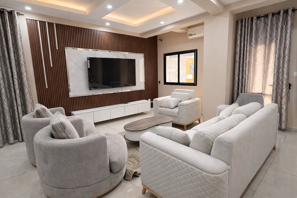 A Secured housing complex for you to enjoy individually or with the whole family. This deluxe apartment is located in the center of Kipe, Conakry, just minutes from popular local attractions such as Prima Center, Lycee Francais and the US Embassy of Guinea. Around 15mn from the airport. Enjoy our premium amenities like 24-7 WIFI connection and electricity, washer& dryer on the premises while you relax to any of our elegantly appointed rooms w/ entertainment system to make ur stay memorable.