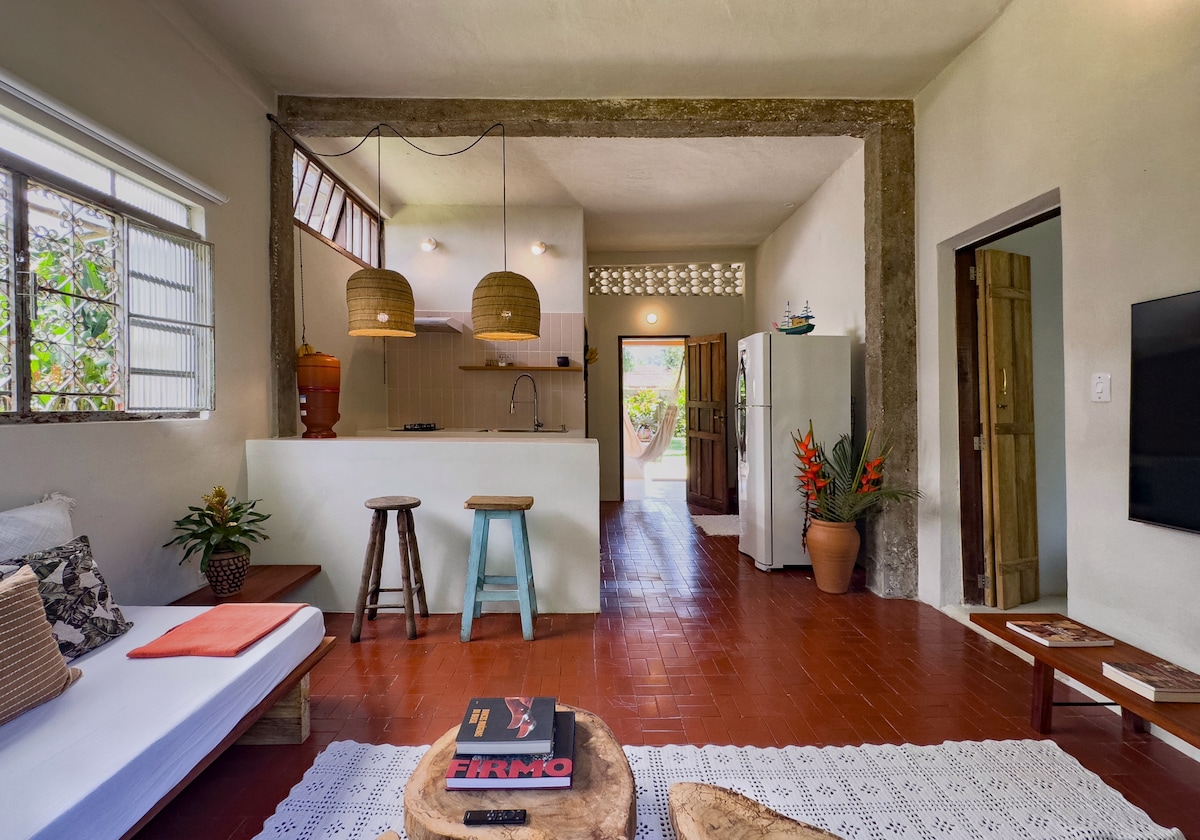 ✨ Casa Arte – Διαμονή με στυλ και έμπνευση ✨ Σε απόσταση μόλις 50 μέτρων από την άμμο, σε στρατηγική τοποθεσία που περιβάλλεται από πράσινο και κελάηδημα, αυτό το σπίτι συνδυάζει άνεση, τέχνη και φύση. Υπάρχουν 2 άνετες σουίτες, η μία με μπαλκόνι και εκπληκτική θέα στη θάλασσα. Η διακόσμηση που φέρει την υπογραφή καλλιτεχνών της πόλης μετατρέπει κάθε χώρο σε ζωντανή γκαλερί. 🌿Στο μπάνιο, ο ευκάλυπτος στο ντους λειτουργεί ως φυσικό αποσμητικό, προσφέροντας φρεσκάδα και μια αίσθηση σπα. Ερωτευτείτε την Praia Grande de Paraty