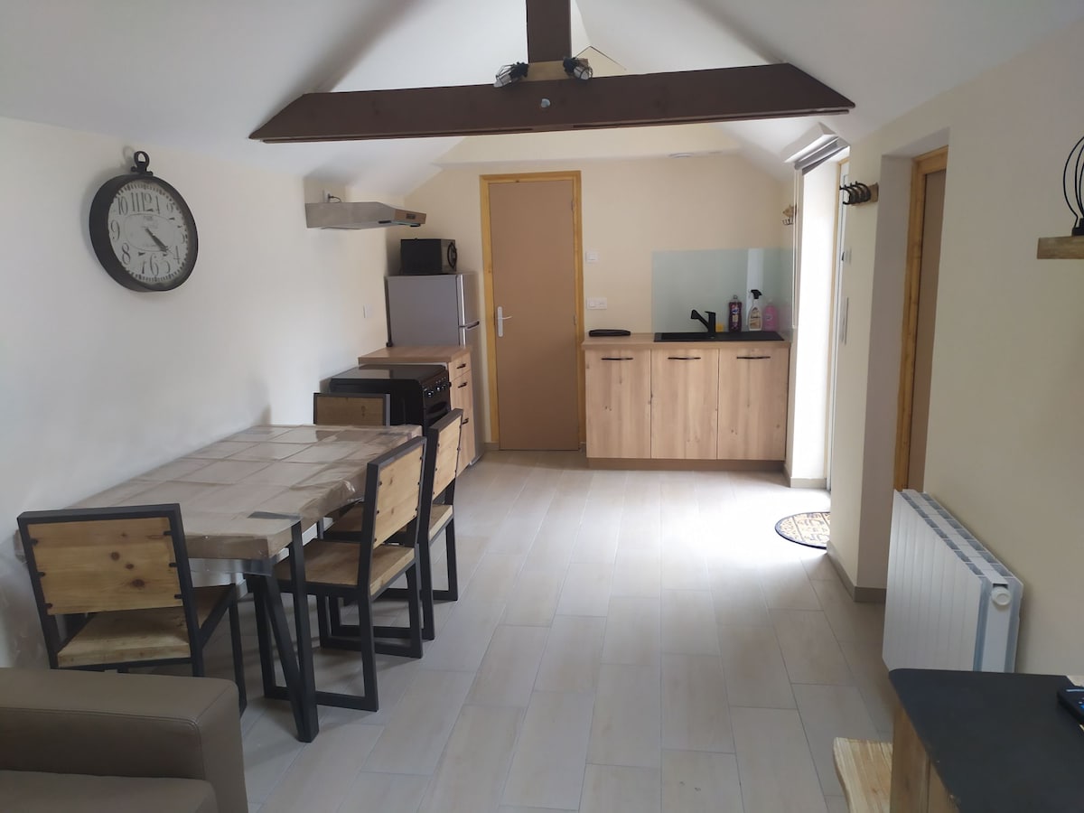 Ελάτε να φορτίσετε τις μπαταρίες σας σε ένα μοναδικό και ειρηνικό περιβάλλον που περιβάλλεται από φύση... Ένα άνετο στούντιο με μικρή κουζίνα, υπνοδωμάτιο με διπλό κρεβάτι, τουαλέτα. Χώρος "ευεξίας" με διπλή υδρομασάζ, ντους υδρομασάζ και 2 λεκάνες. Μπορείτε επίσης να ξεκουραστείτε έξω σε μια ξύλινη βεράντα δίπλα στο ΣΠΑ με 2 ξαπλώστρες, τραπέζι, καρέκλες και ομπρέλα παραλίας... Δυνατότητα κράτησης ως επιλογή 48 ώρες πριν από την άφιξή σας: Πιάτο, σαμπάνια, κρασί...