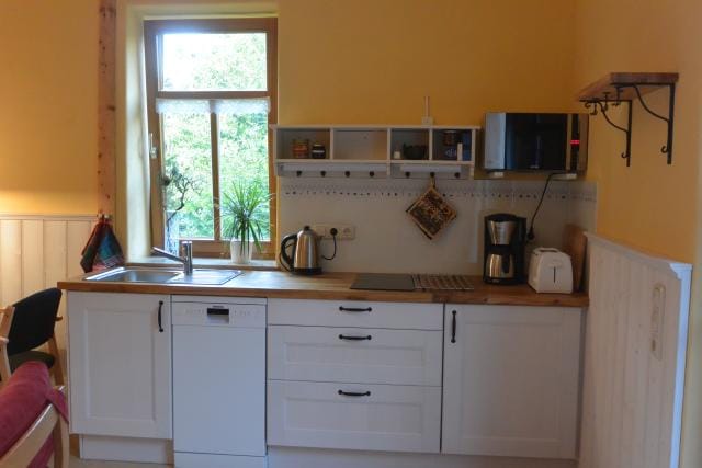 Το διαμέρισμά μας βρίσκεται σε ήσυχο δασικό περιβάλλον, αλλά σε κοντινή απόσταση από το κέντρο της πόλης Sonneberg. Είναι ιδανικό για πεζοπόρους και ποδηλάτες βουνού, με εκατοντάδες χιλιόμετρα μονοπατιών που οδηγούν στο εθνικό πάρκο του Θουριγγικού Δάσους από την μπροστινή μας πόρτα.