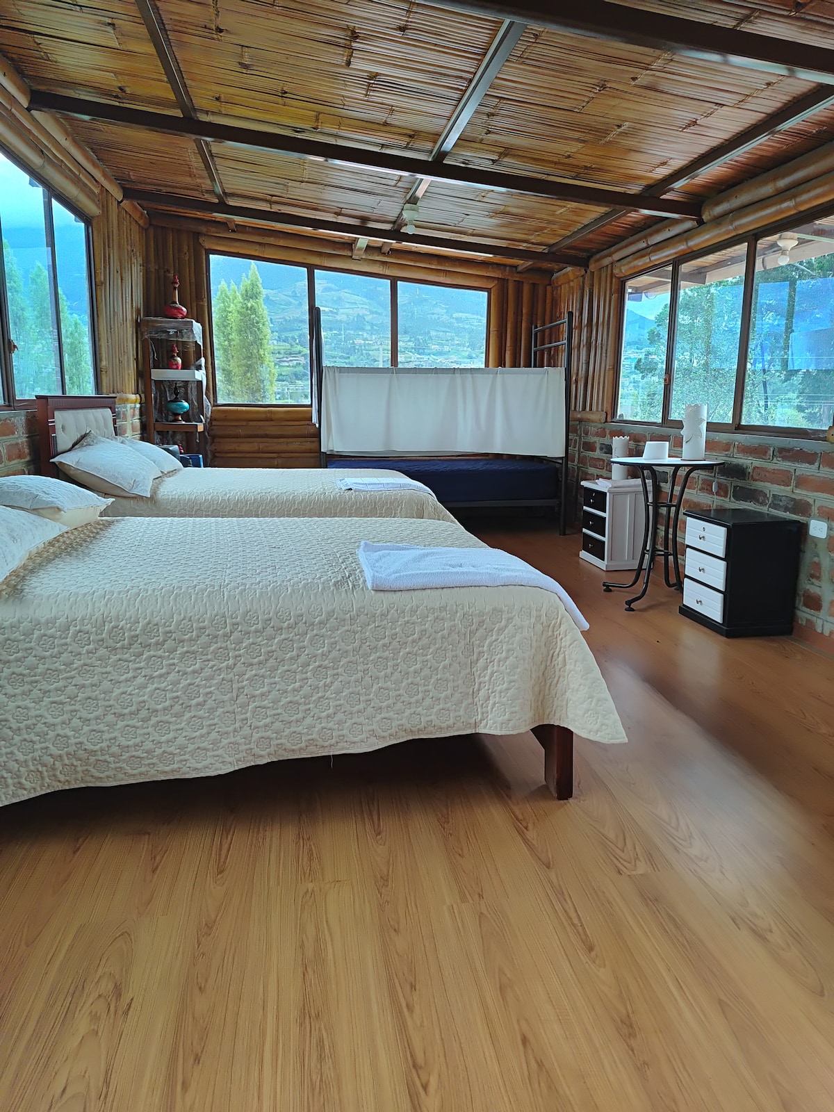 Despierta con una vista espectacular de los Andes en este acogedor refugio en Mojanda, a 20min de Otavalo. Rodeado de paisajes verdes, aves silvestres y aire puro, es ideal para reconectar con la naturaleza, la paz y la cultura andina. Disfruta de atardeceres inolvidables, cielos estrellados y la inmensidad de los volcanes desde la terraza o el gran ventanal. Un lugar mágico entre el cielo y la tierra.