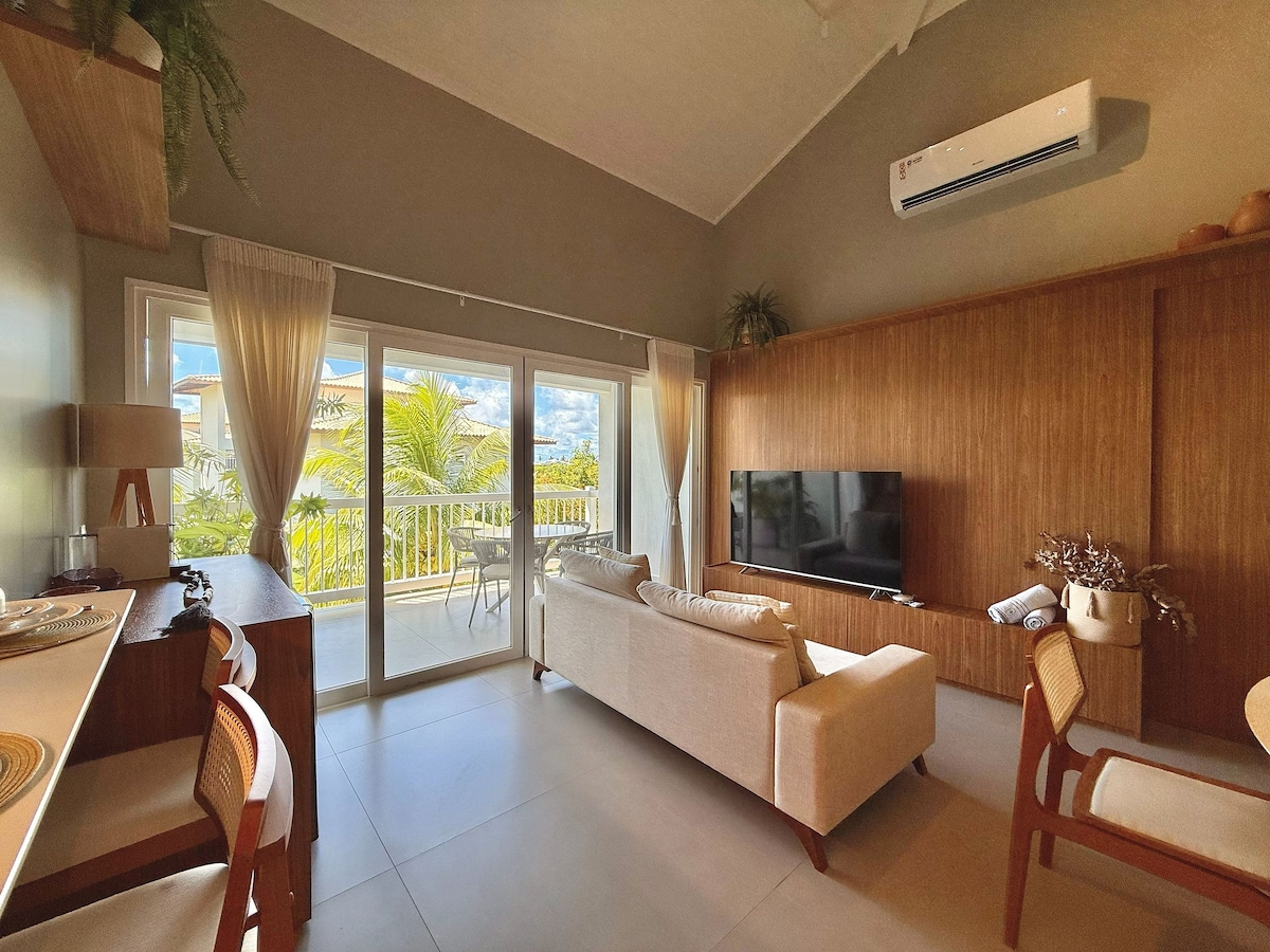 Μέσα στο νέο, σύγχρονο και οικολογικό τουριστικό συγκρότημα Reserva Imbassaí δίπλα στο Grand Palladium Resort. Διαμέρισμα υψηλού επιπέδου με ιδιωτική παραλία, κλειστό συγκρότημα, μπαλκόνι γκουρμέ με μπάρμπεκιου, 65 τ.μ., υπνοδωμάτιο με κλιματισμό, ευρύχωρο σαλόνι με κλιματισμό, ο καναπές του σαλονιού ισοδυναμεί με 2 ενωμένα μονά κρεβάτια, χώρος υπηρεσιών, εξοπλισμένη κουζίνα. Το διαμέρισμα είναι διακοσμημένο με εξαιρετικό φινίρισμα. Με WiFi, Smart TV και SKY. 24ωρη φύλαξη και 24ωρη περιπολία.