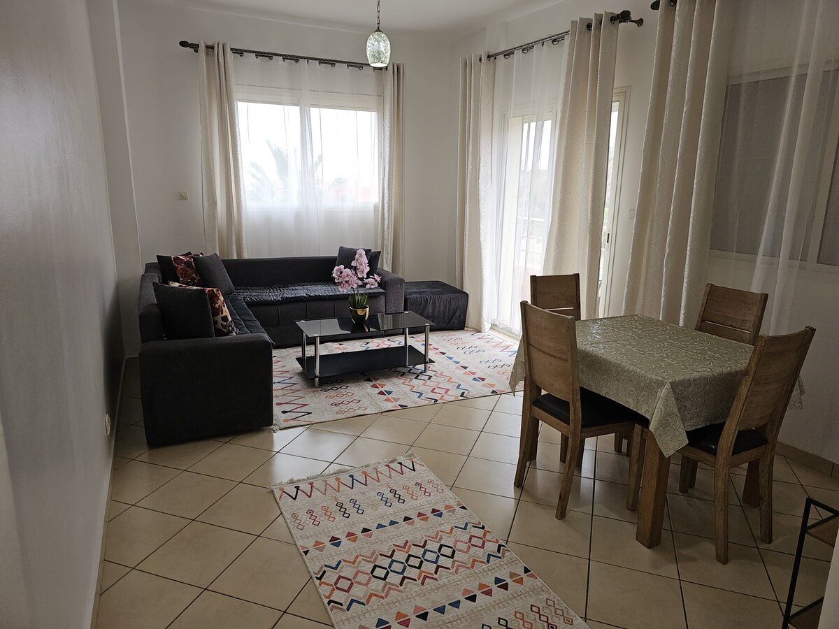 Άνετο διαμέρισμα, κοντά στην παραλία με 2 υπνοδωμάτια (για 5 άτομα), σαλόνι, κουζίνα και μπάνιο, ντουζιέρα. και στο μπαλκόνι μια ωραία πισίνα τζακούζι με μαροκινή θέρμανση σε θερμοκρασία δωματίου (άδεια τον Δεκέμβριο, Ιανουάριο, Φεβρουάριο). Κατοικία ασφαλισμένη με κάμερα και φροντιστή , δωρεάν πάρκινγκ στην κατοικία . καταστήματα στον δρόμο, φαρμακείο, παντοπωλείο, κρεοπωλείο... υδάτινο κέντρο
